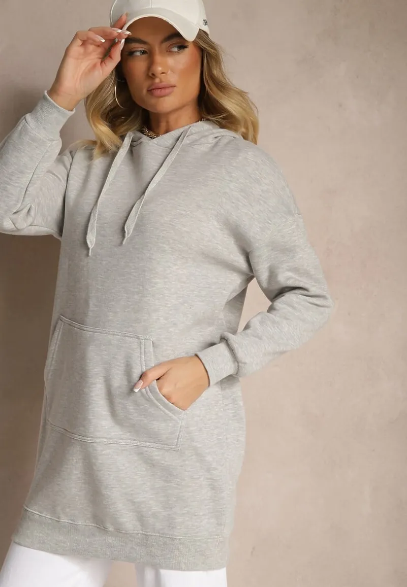 Bluza Firro z kapturem, o nieco luźnym, przedłużonym kroju. Wyposażona w dwustronną, kangurową kieszeń. Z długimi rękawami oraz ściągaczami przy dolnych krawędziach Wykonana z bawełnianej tkaniny, dodatkowo od środka wykończona polarem. Możesz ją nosić jako sportową sukienkę lub oversizową bluzę z kolarkami i sneakersami!