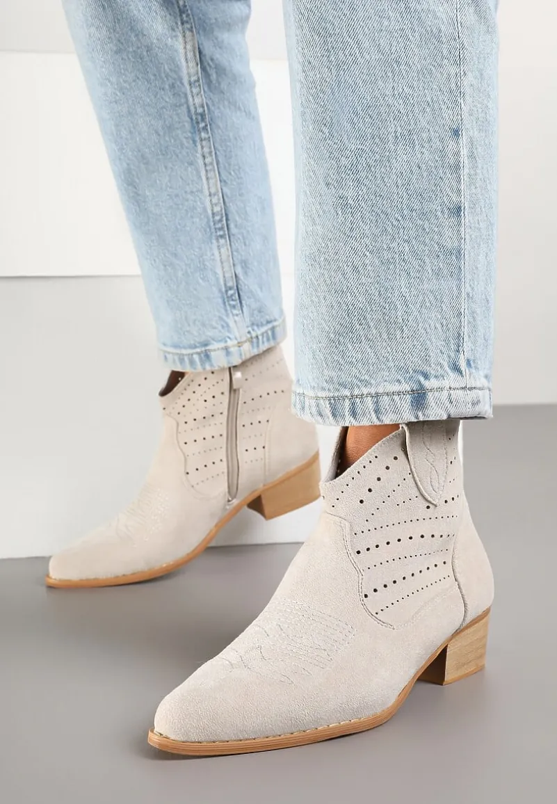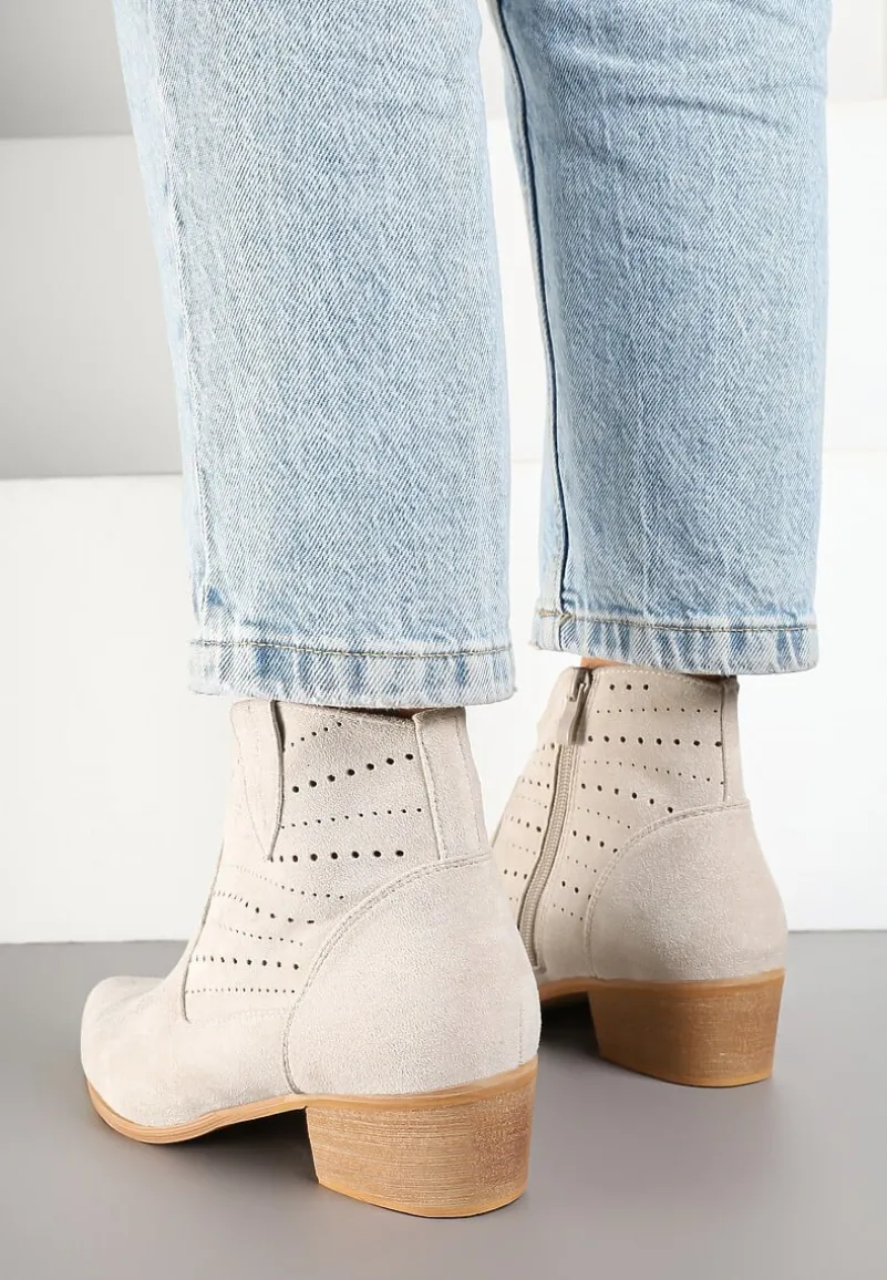 Botki Fonarela o kowbojskim charakterze wyróżniają się stożkowym obcasem, który dodaje stylizacji nowoczesnej elegancji. Ażurowa cholewka przyciąga wzrok, perfekcyjnie komponując się z casualowymi jeansami na co dzień czy elegancką sukienką na wieczorne wyjścia. Te wyjątkowe botki, z zamkniętym noskiem w szpic i praktycznym zapięciem na suwak, są doskonałym wyborem na chłodniejsze dni przejściowych sezonów. Zdobienia podkreślają niepowtarzalny styl, pozwalając poczuć się wyjątkowo i pewnie w każdej sytuacji.