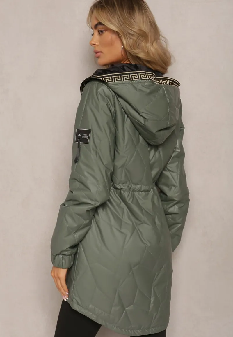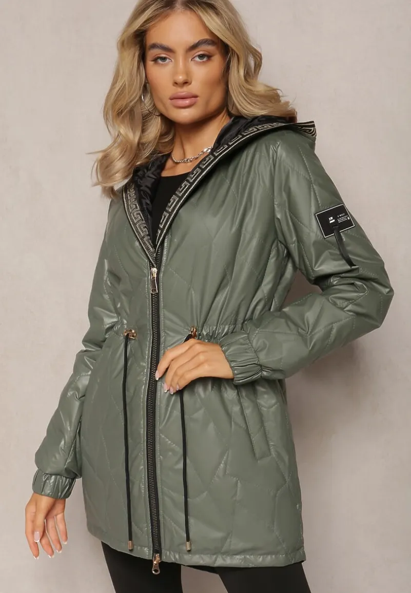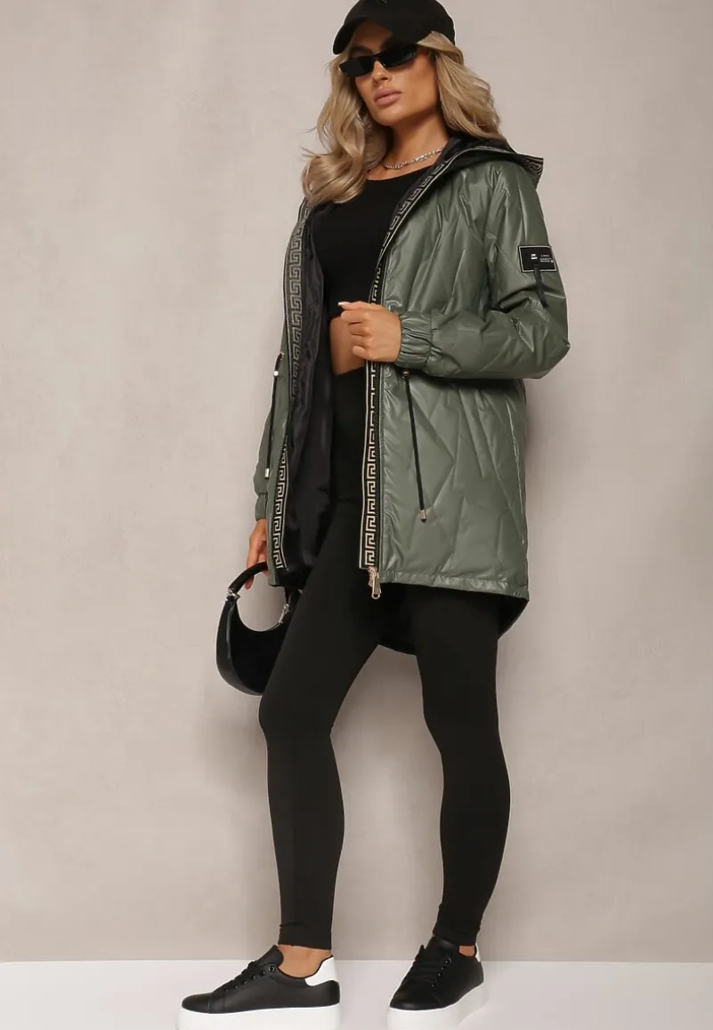 Kurtka Diomasio z pikowanego, metalicznego materiału. Zapinana na zamek błyskawiczny, długie rękawy zakończone są elastycznym ściągaczem dla zabezpieczenia przed zimnem. Kaptur nie jest odpinany. Boczne kieszenie kurtki wsuwane. W pasie wszyto sznurek do ściągania. Lekko ocieplona. To przejściowy model w nowoczesnym stylu, który kochają influencerki na świecie.