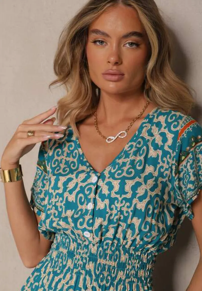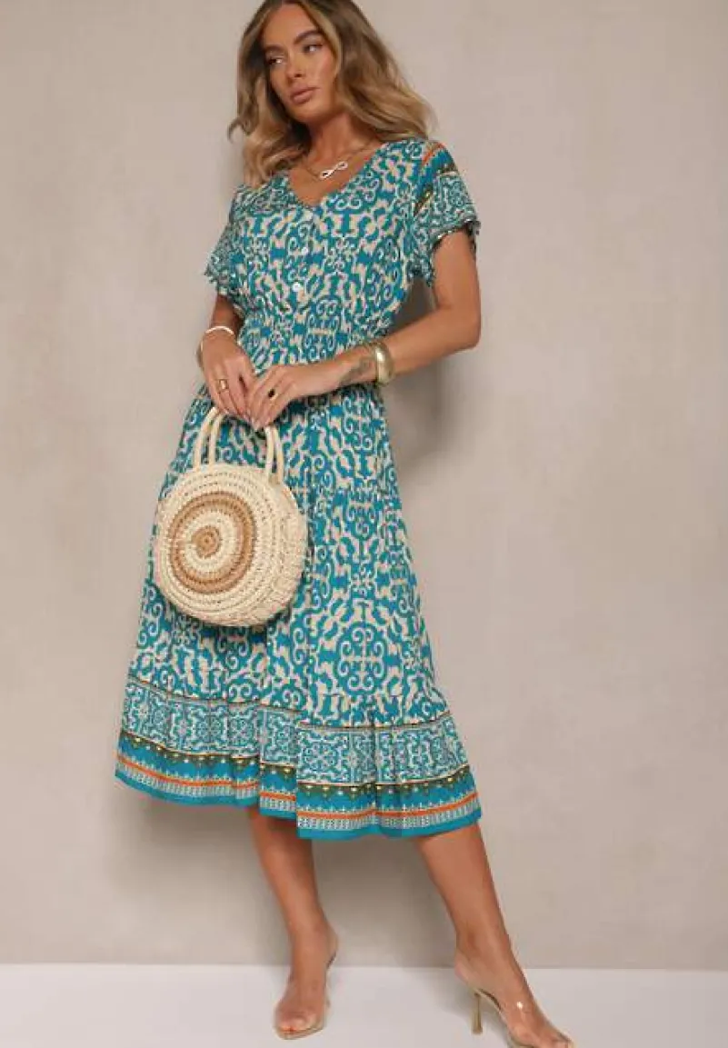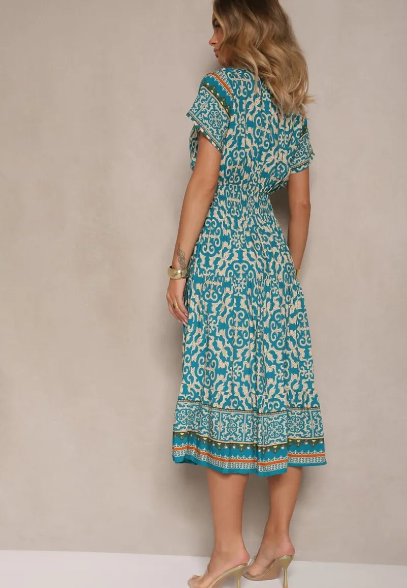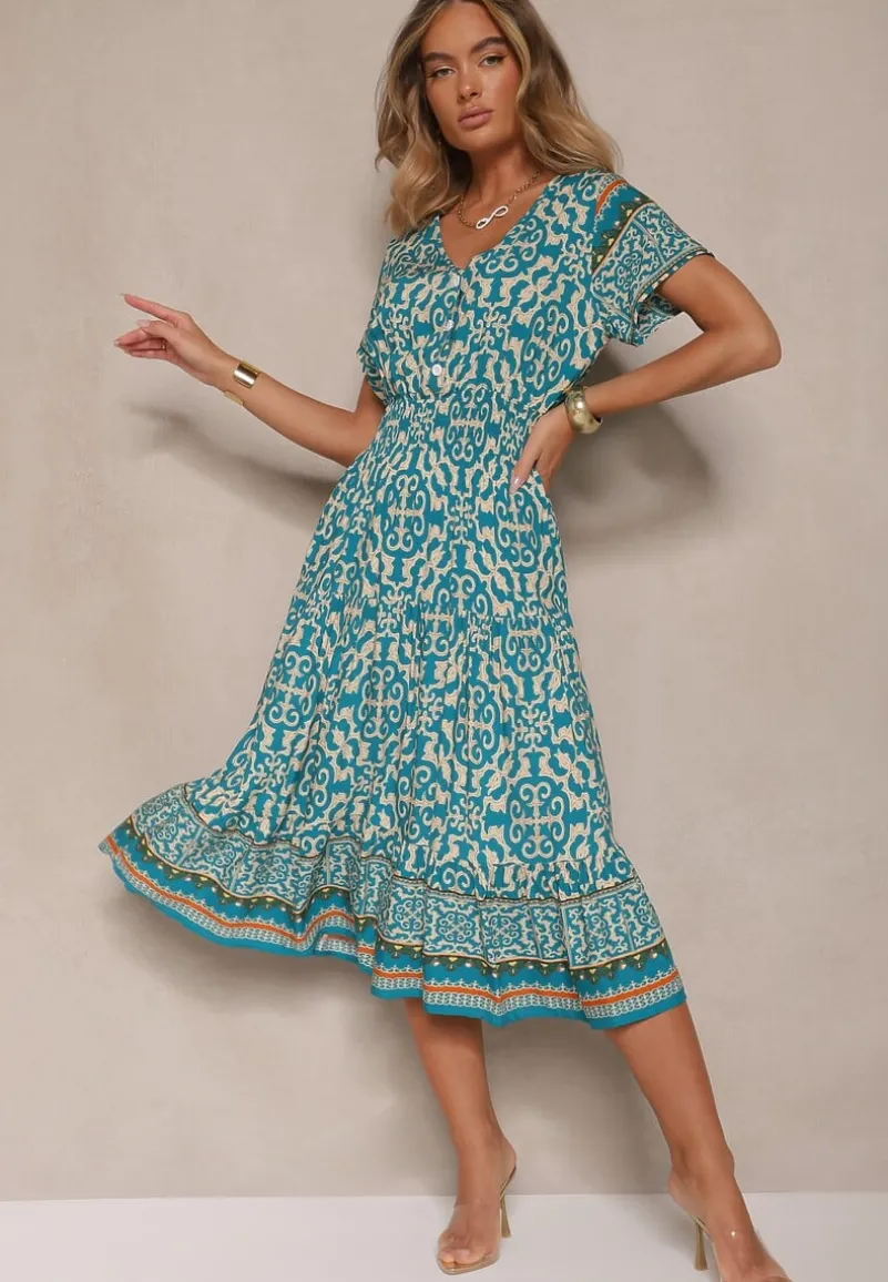 Sukienka z Bawełny Ozdobiona Ornamentnym Motywem Fillena to idealny wybór dla modnej kobiety, która chce wyróżnić się w tłumie. Wzór ornamentowy dodaje jej unikatowego charakteru. Stwórz zestaw idealny, łącząc sukienkę z oryginalnymi sandałami na koturnie oraz skórzaną torebką. Niech Twój styl mówi za Ciebie! Gumka w talii rozciąga się o dodatkowe 20 cm dla każdego rozmiaru.