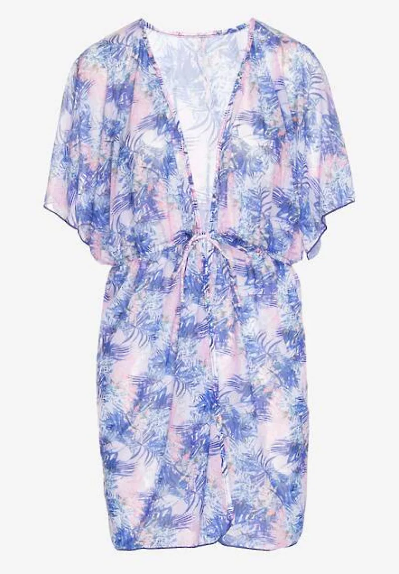Narzutka Plażowa z Wiązaniem w Kwiatowy Wzór Mevelaura to must-have w letniej garderobie każdej modnej kobiety! Lekkość fasonu i kwiatowy wzór dodają uroku i subtelności, idealnie komponując się z plażowym lookiem. Dzięki wiązaniu w talii możesz podkreślić swoją sylwetkę. Zestaw ją z ulubionymi szortami i klapkami na plaży lub z sukienką maxi i sandałami na wieczorne wyjście — zawsze w modnym stylu!