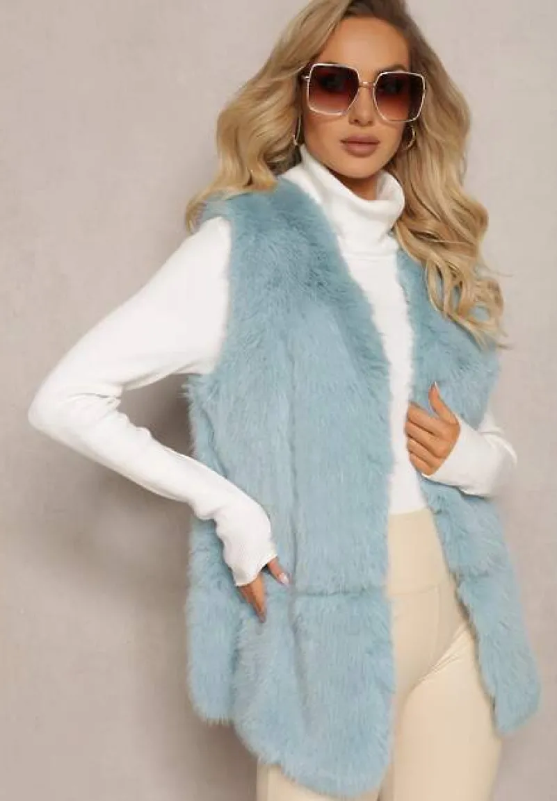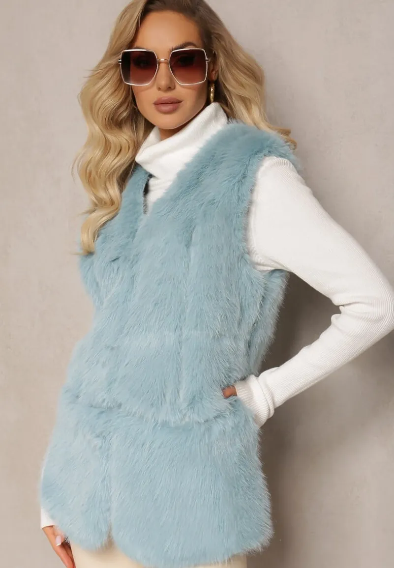 Kamizelka Tekllesa zapinana z przodu na haftki. Wykonana z miłego w dotyku, ozdobnego futerka. Zdobiona wstawkami z ekoskóry.