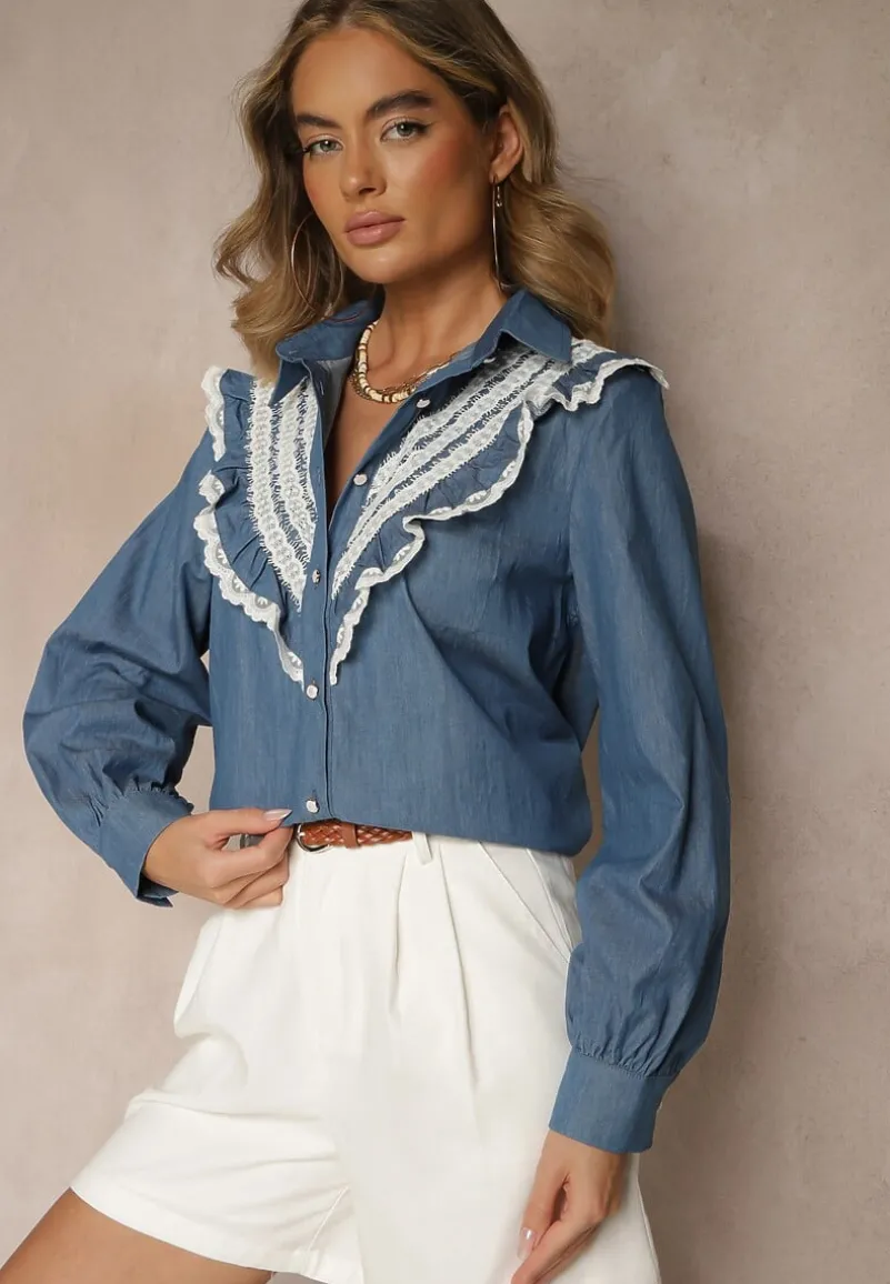 Odkryj niepowtarzalny styl z Rustykalną Koszulą z Bawełny Zdobioną Koronką i Falbankami Lisarilis! Ta koszula z długim rękawem, eleganckim kołnierzykiem i subtelnym dekoltem subtelnie podkreśli sylwetkę i doda szyku każdej stylizacji. Idealna zarówno na casualowe spacery, jak i formalne spotkania – wystylizuj ją ze spodniami typu chinos i klasycznymi balerinkami do biura lub ze sneakersami i jeansami na co dzień. Efekt wow gwarantowany!