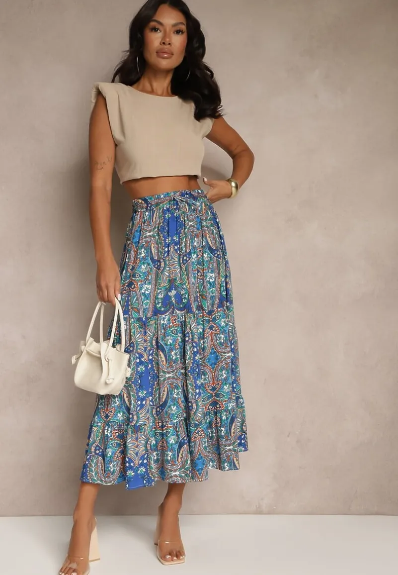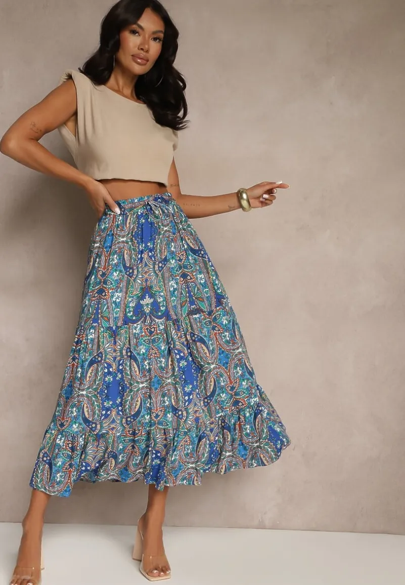 Odkryj niezwykłą spódnicę z wiskozy ozdobioną motywem paisley Ellivae, która doda nuty wyjątkowości Twoim codziennym stylizacjom! Jej luźny krój i elastyczny stan sprawiają, że jest idealna zarówno na weekendowe wyjścia, jak i formalne spotkania. Stylizuj ją z obszernym swetrem i botkami na co dzień, lub zestaw ją z elegancką bluzką i szpilkami na wyjątkowe okazje. Wzór paisley sprawi, że wyróżnisz się z tłumu, a Ty poczujesz się pewnie i modnie, niezależnie od sytuacji! Gumka w pasie rozciąga się o dodatkowe 12 cm.