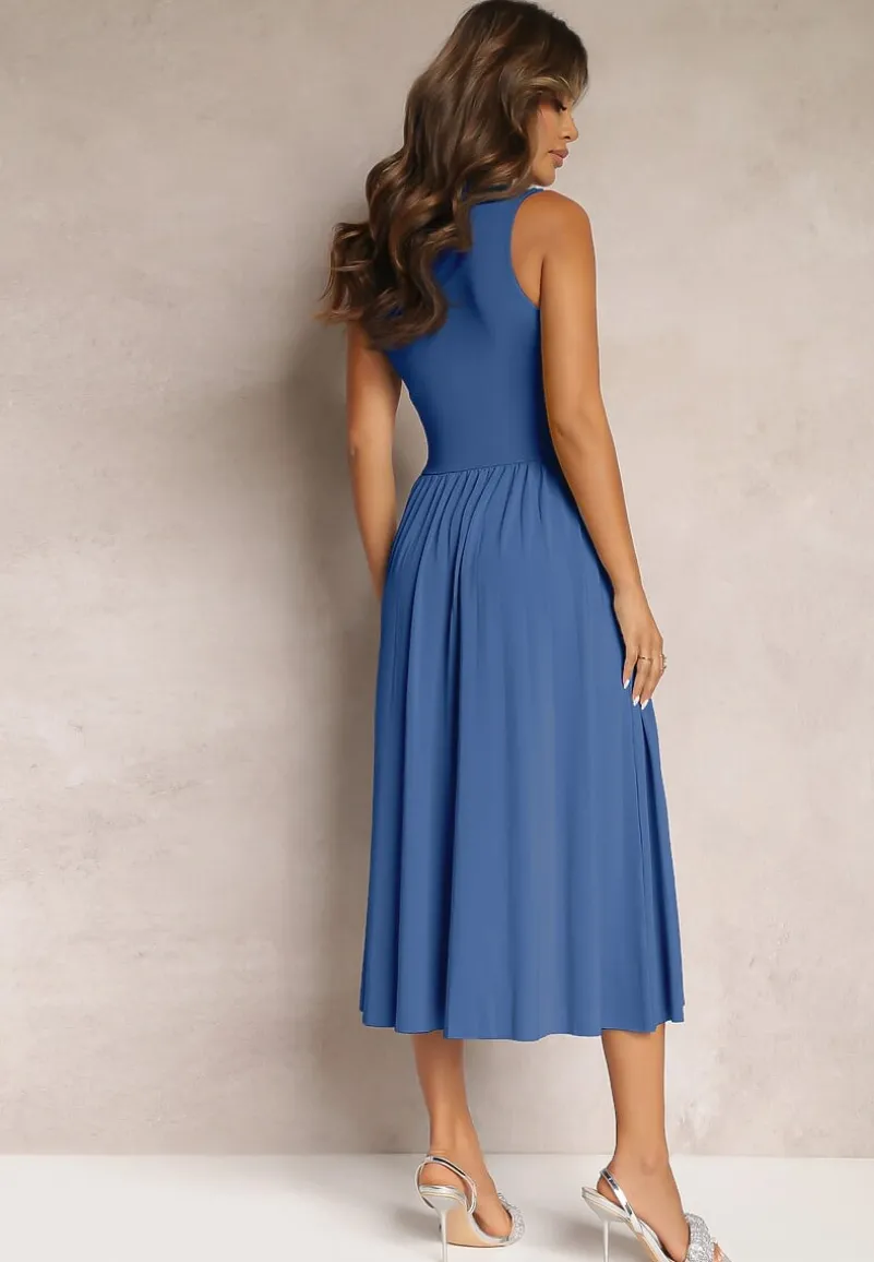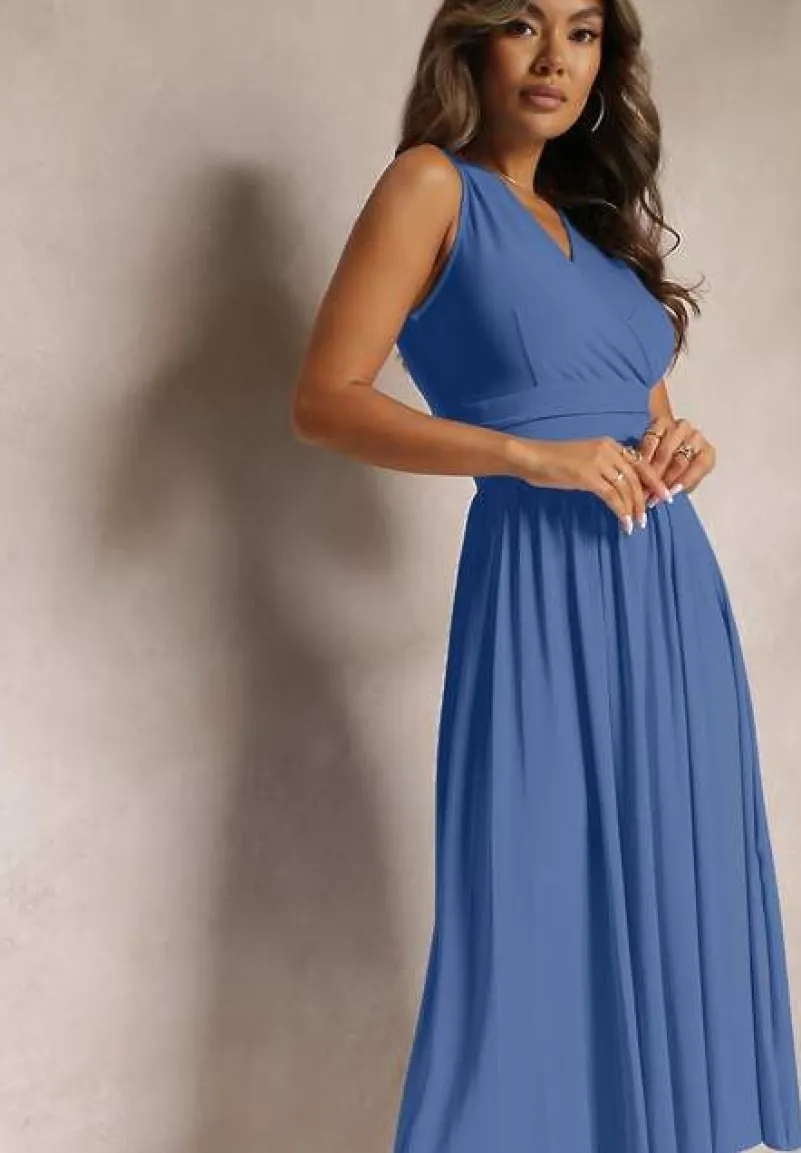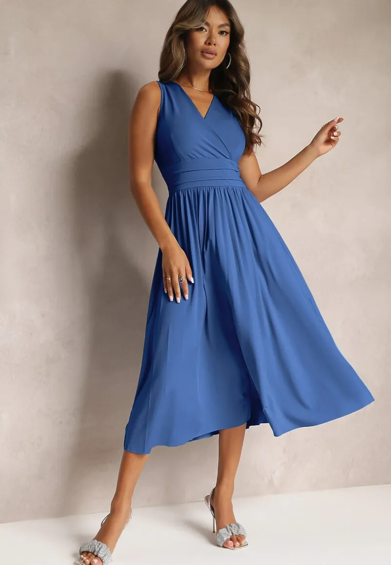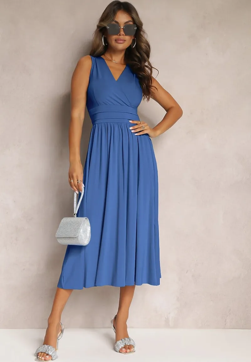 Sukienka Anamarie o długości midi, z modnym plisowanym dołem i kopertowym dekoltem, bez rękawów i bez podszewki.