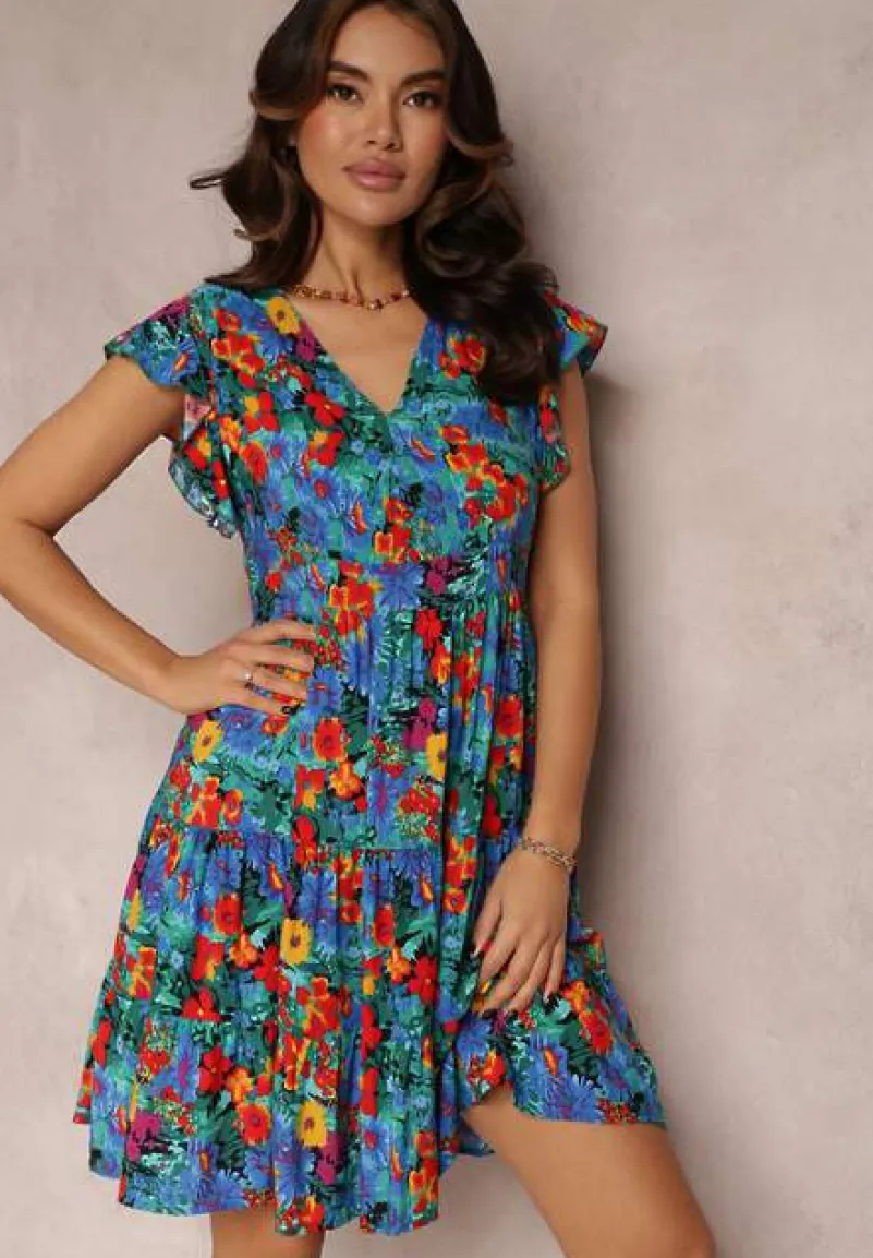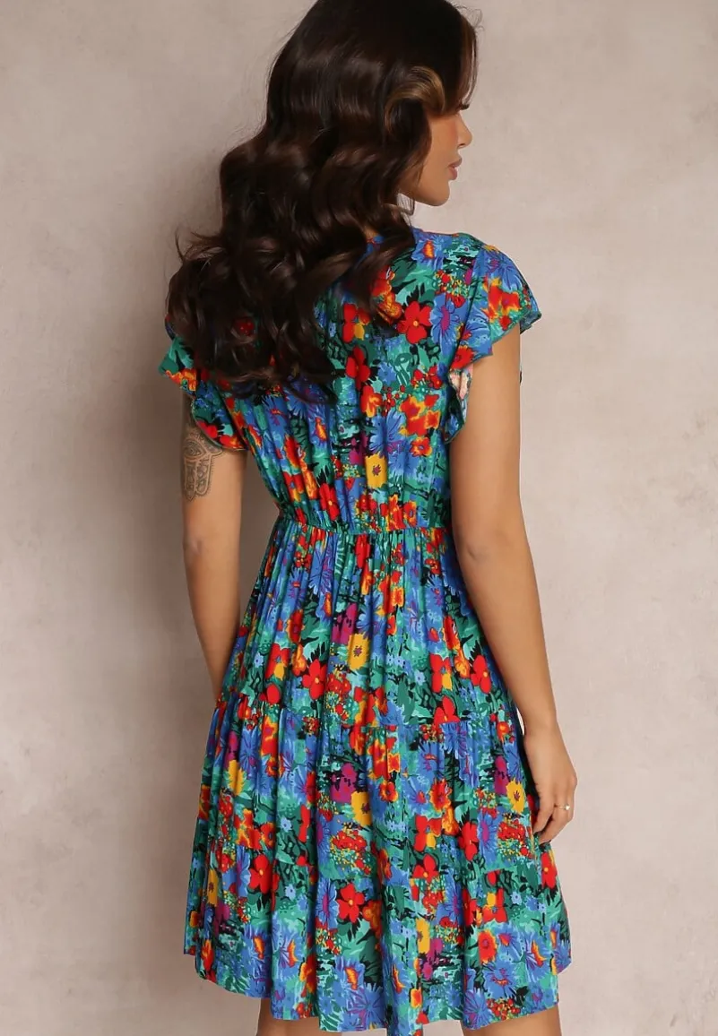 Wiskozowa sukienka Linne o długości mini. Wyróżnia się falbanką na dole. Posiada trójkątny dekolt i krótkie rękawy. Bez podszewki. Rozkloszowana sukienka Linne idealne na wiosnę i lato.