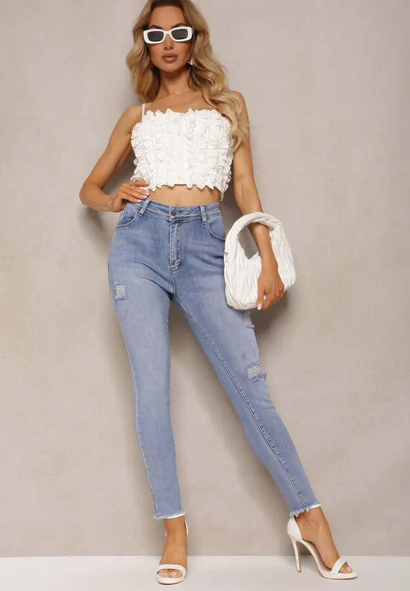 Jeansy Velazquez z regularnym stanem i prostymi, wywiniętymi nogawkami. Model z linii plus size. Zapinane na klasyczny guzik i zamek błyskawiczny. Modne jeansy Velazquez wyróżniają się ciekawymi przetarciami.