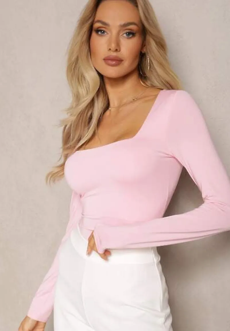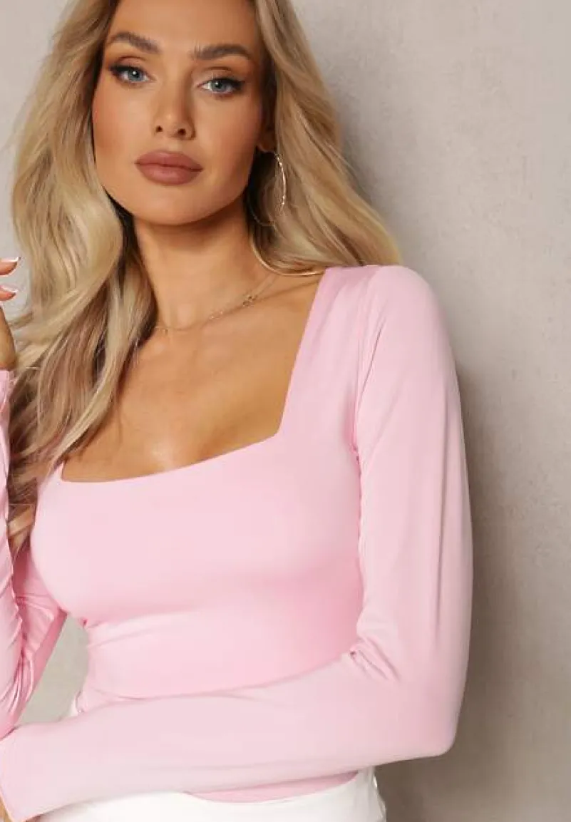 Bluzka Seliusei z głębokim, kwadratowym dekoltem (trend alert!). Z długim rękawem. Dopasowany fason podkreśli sylwetkę, standardowa długość. Zakryte plecy. Wykonana z jednokolorowej dzianiny. To bluzka, która będzie doskonałą bazą do looków w różnym stylu.