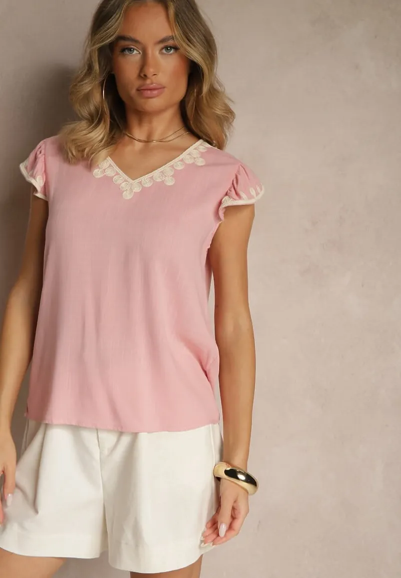 Bluzka z Bawełny Ozdobiona Haftem Savoreia to stylowy wybór dla każdej modnej kobiety. Krój z romantycznym haftem, który dodaje jej wyjątkowego charakteru. Ta bluzka sprawdzi się zarówno na co dzień, w połączeniu z jeansami i sneakersami, jak i na bardziej formalne okazje, zestawiona z elegancką spódnicą i szpilkami. Wykonana z bawełny.