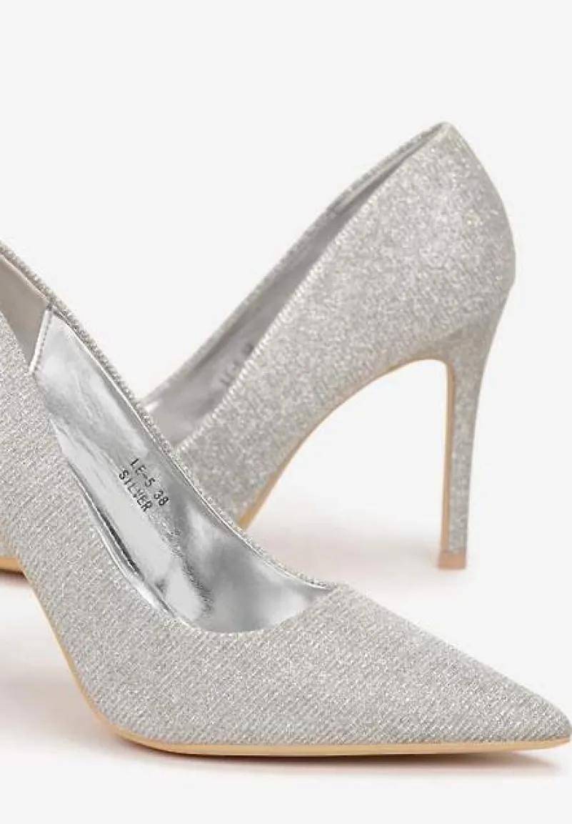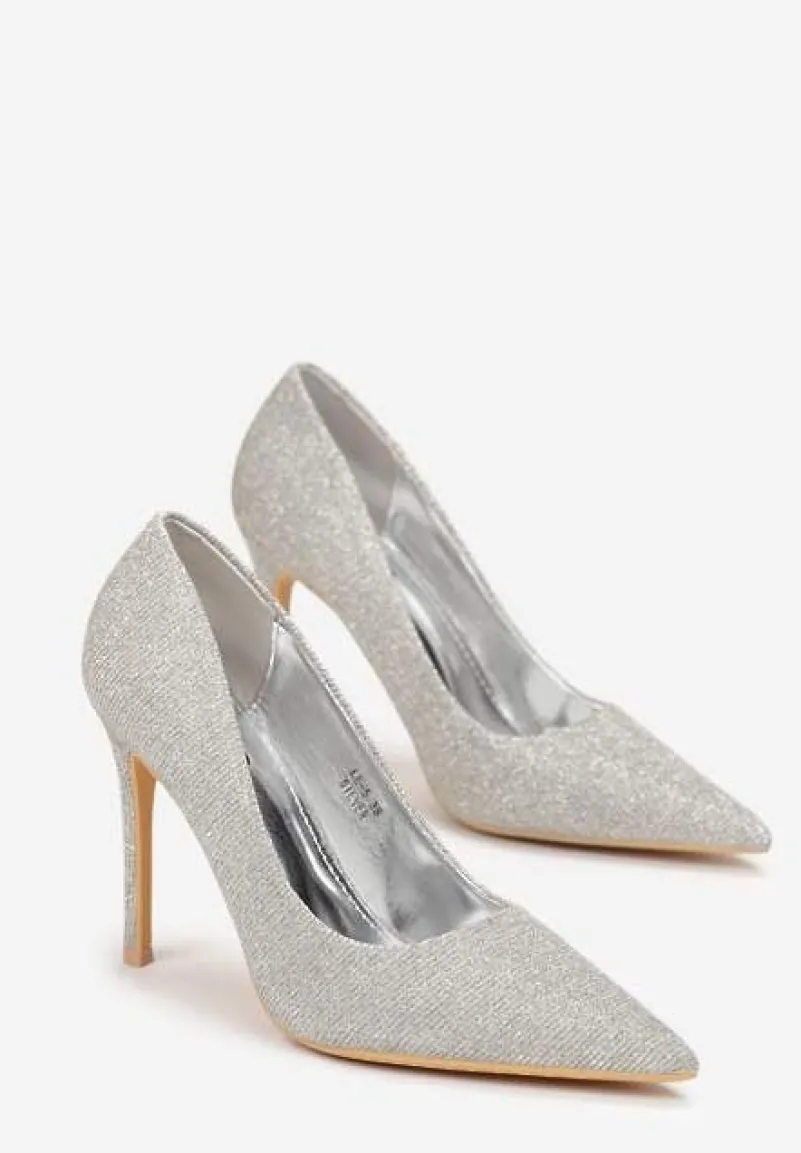 Srebrne Brokatowe Szpilki ze Szpiczastym Noskiem Dazzla