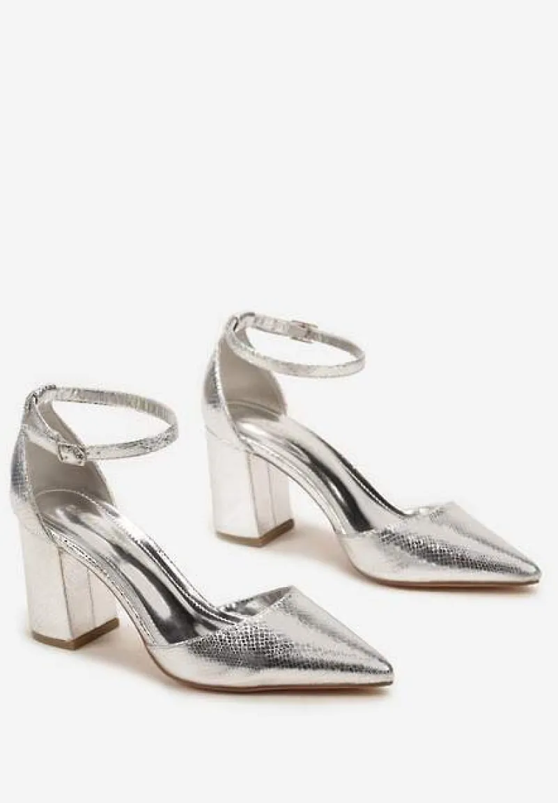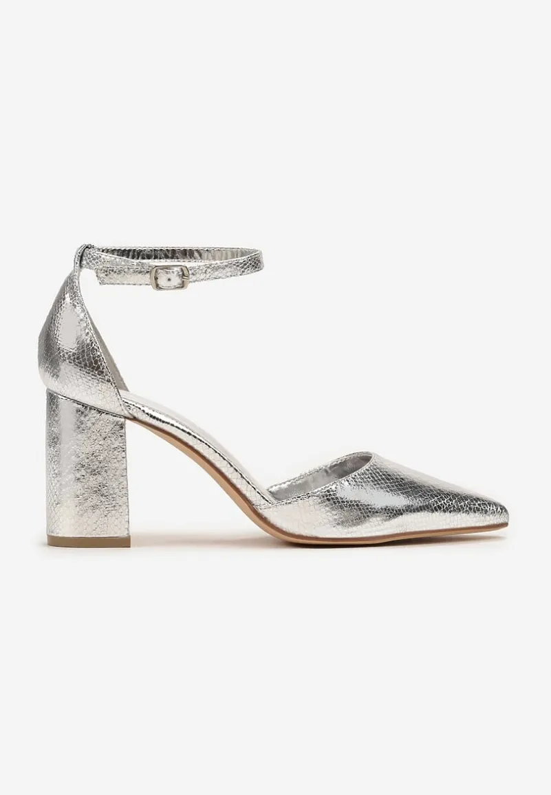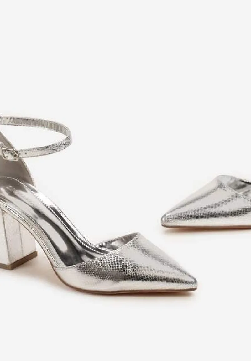 Czołenka Efrudia to esencja wyrafinowanego smaku i aktualnych trendów. Stylizowany obcas nie tylko zapewnia pewny krok, ale również dodaje elegancji. Zakończone charakterystycznym, spiczastym noskiem i zapięciem wokół kostki, będą idealnym kompanem zarówno do biurowego zestawu z ołówkową spódnicą jak i odważnej stylizacji na wieczorne wyjście z plisowaną midi i błyszczącymi dodatkami. W każdej sytuacji Czołenka na Obcasie z Metalicznym Połyskiem i Tłoczeniem Efrudia dodadzą blasku twoim krokom.