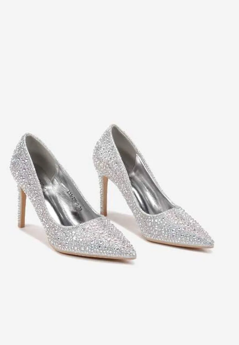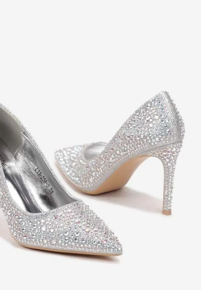 Srebrne Eleganckie Szpilki Wykończone Cyrkoniami Ivilta