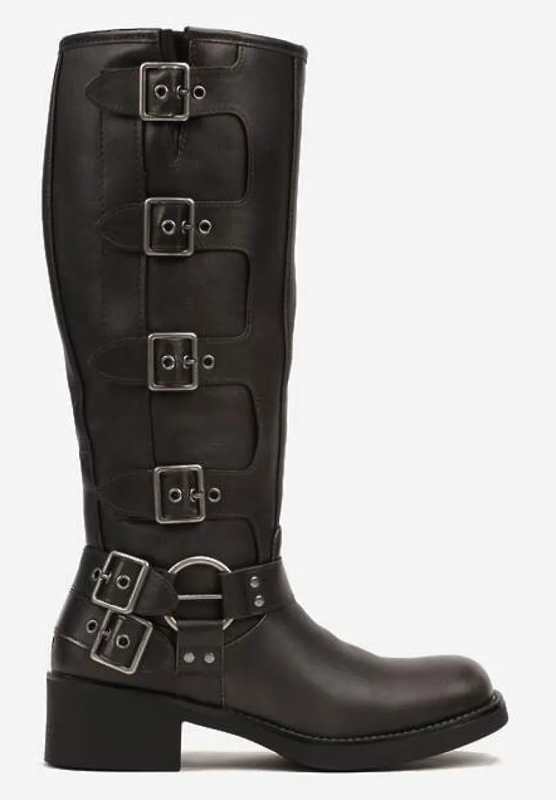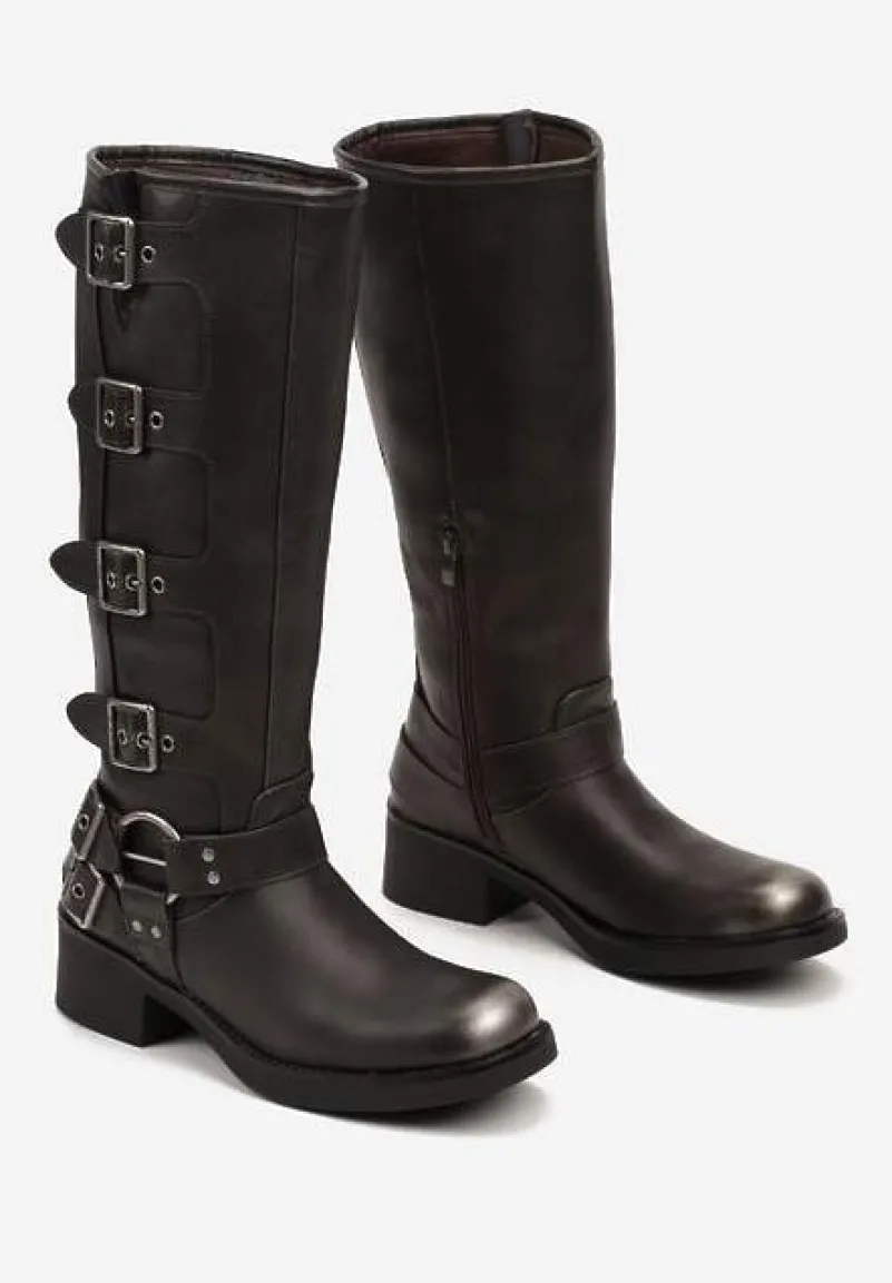 Kozaki Mevanisa to esencja miejskiego stylu – idealne dla odważnych i pewnych siebie kobiet. Płaski obcas zapewnia stabilność na każdym kroku. Funkcjonalność spotyka się tu z modą – regulowane paski z klamrami pozwalają na dopasowanie do łydki. Nosząc te kozaki, wpleć w codzienne stylizacje nutę buntowniczego charakteru, łącząc je na przykład z rozkloszowaną spódnicą i ramoneską. Na wieczorowy spacer załóż je do obcisłych skórzanych spodni i wyrazistej, oversize’owej marynarki, by zrobić piorunujące wrażenie.
