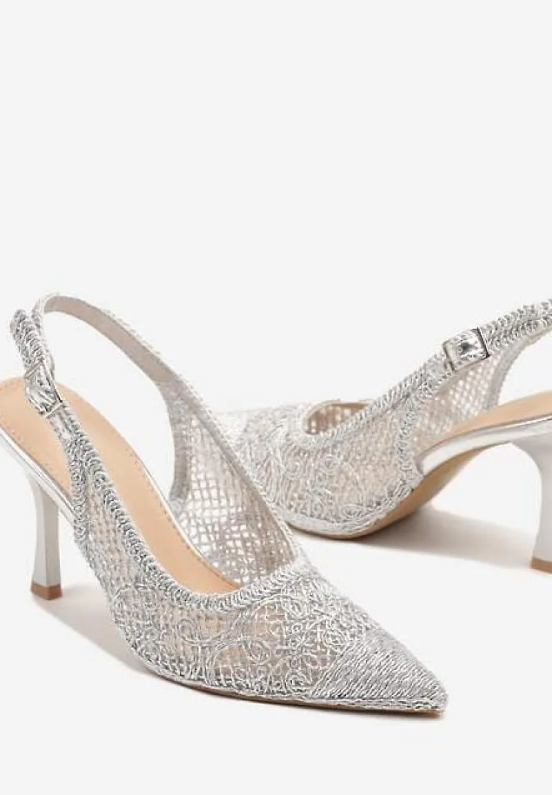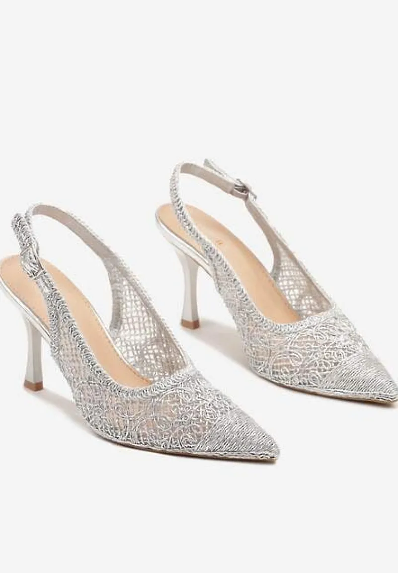 Sandały na Szpilce Typu Slingback Ozdobione Siateczką Aranalia na sprzączkę to idealne uzupełnienie garderoby dla pewnej siebie kobiety. Szpilka dodaje elegancji i wydłuża sylwetkę, a nosek subtelnie podkreśla kształt stóp. Efektowna siateczka sprawia, że sandały doskonale wpisują się w najnowsze trendy. To znakomity wybór zarówno do codziennych stylizacji z jeansami i luźną bluzką, jak i do eleganckiej sukienki na wieczorne wyjście.
