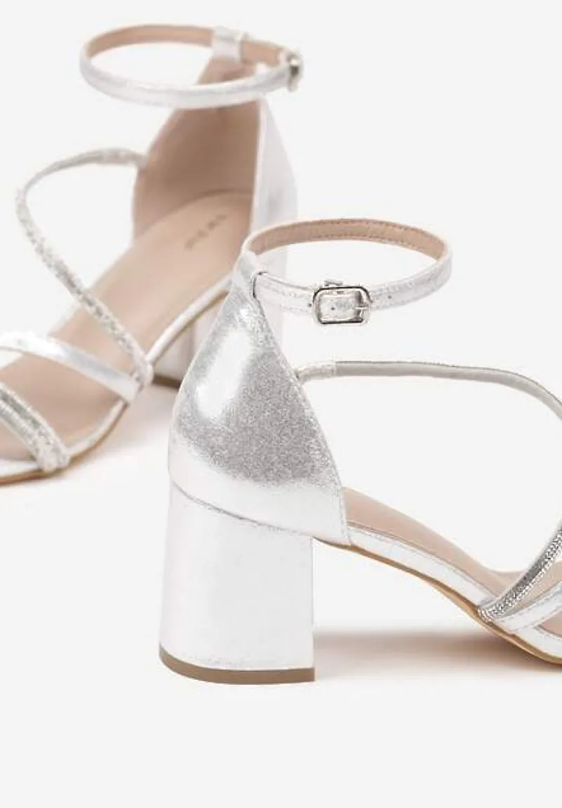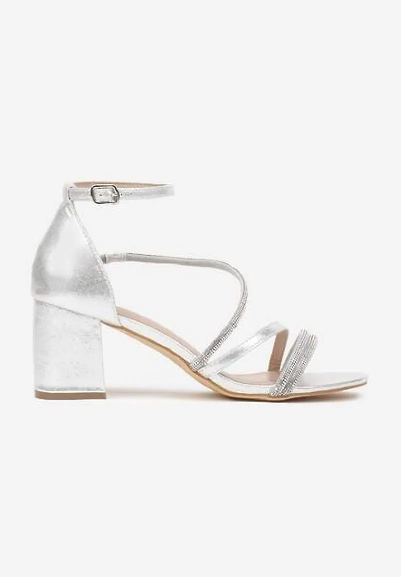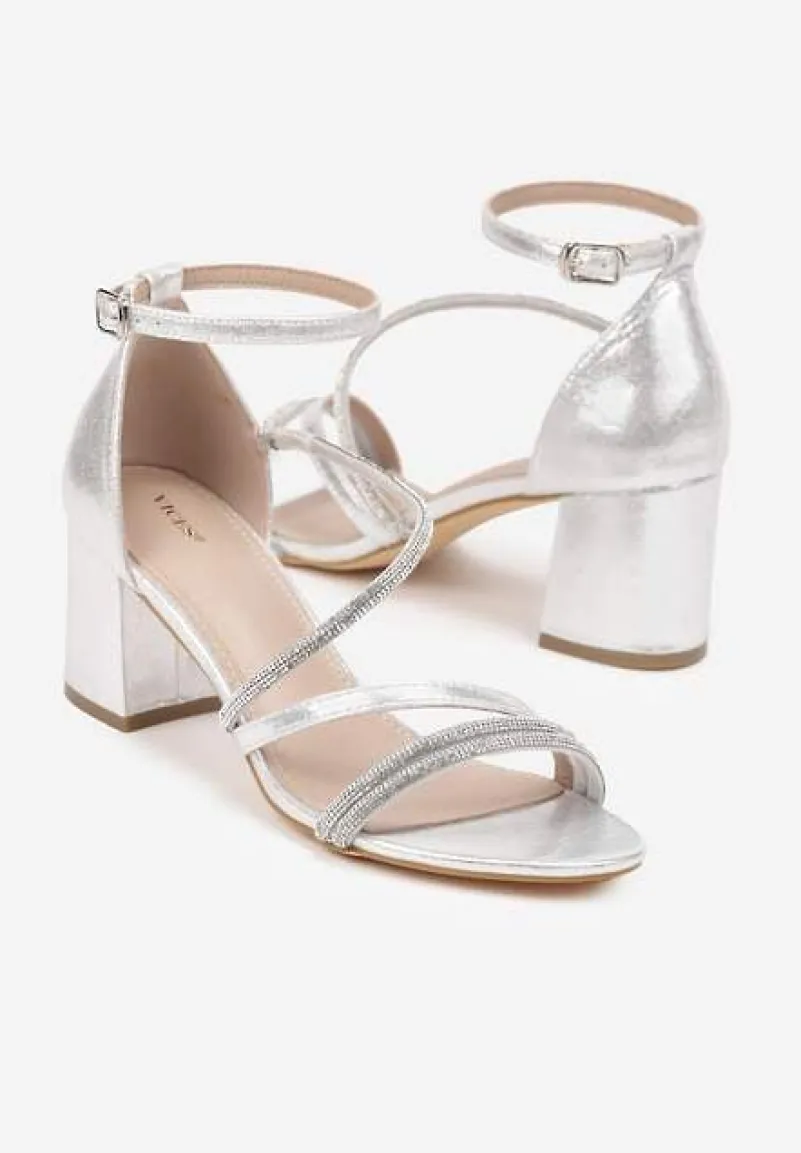 Srebrne Sandały Vices na Słupku Ozdobione Cyrkoniami Otiriel