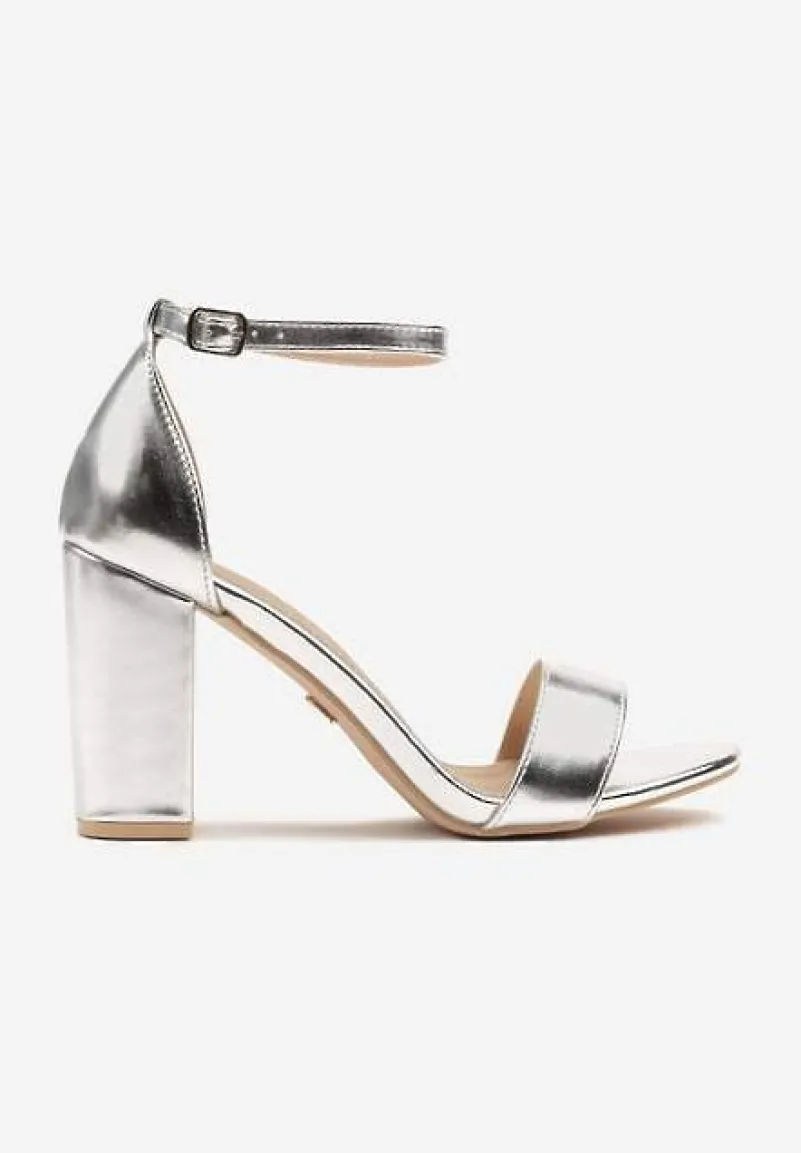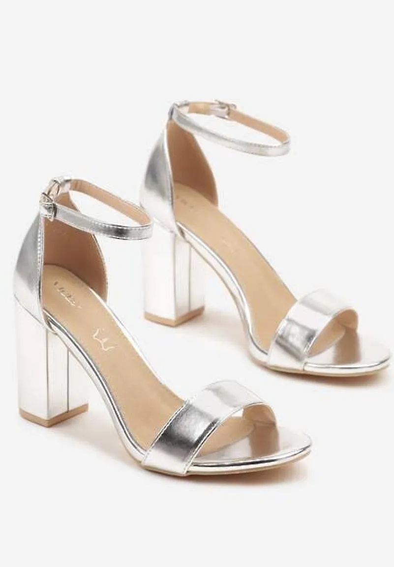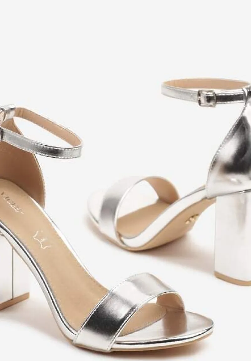 Srebrne Sandały Vices na Słupku z Wkładką ze Skóry Naturalnej Avelhira