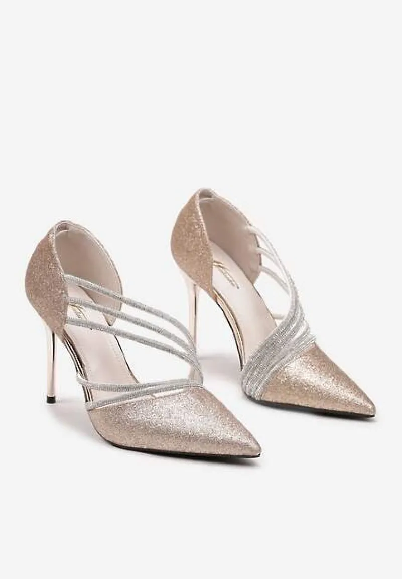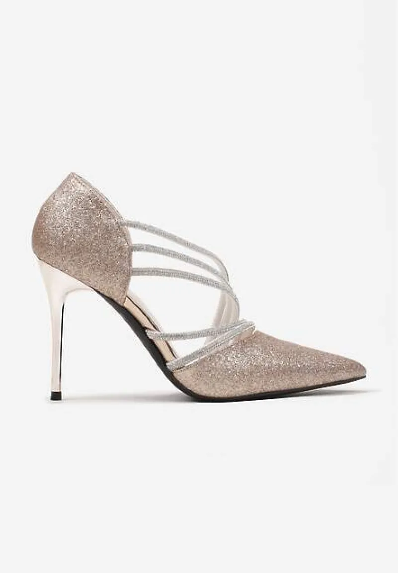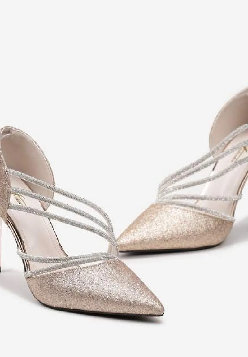 Szampańskie Brokatowe Szpilki na Metalicznej Szpilce Ozdobione Cyrkoniami Ineka