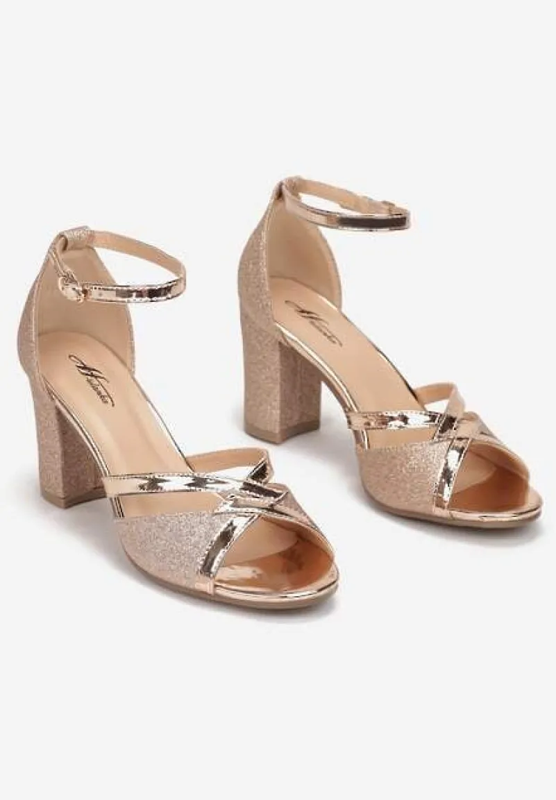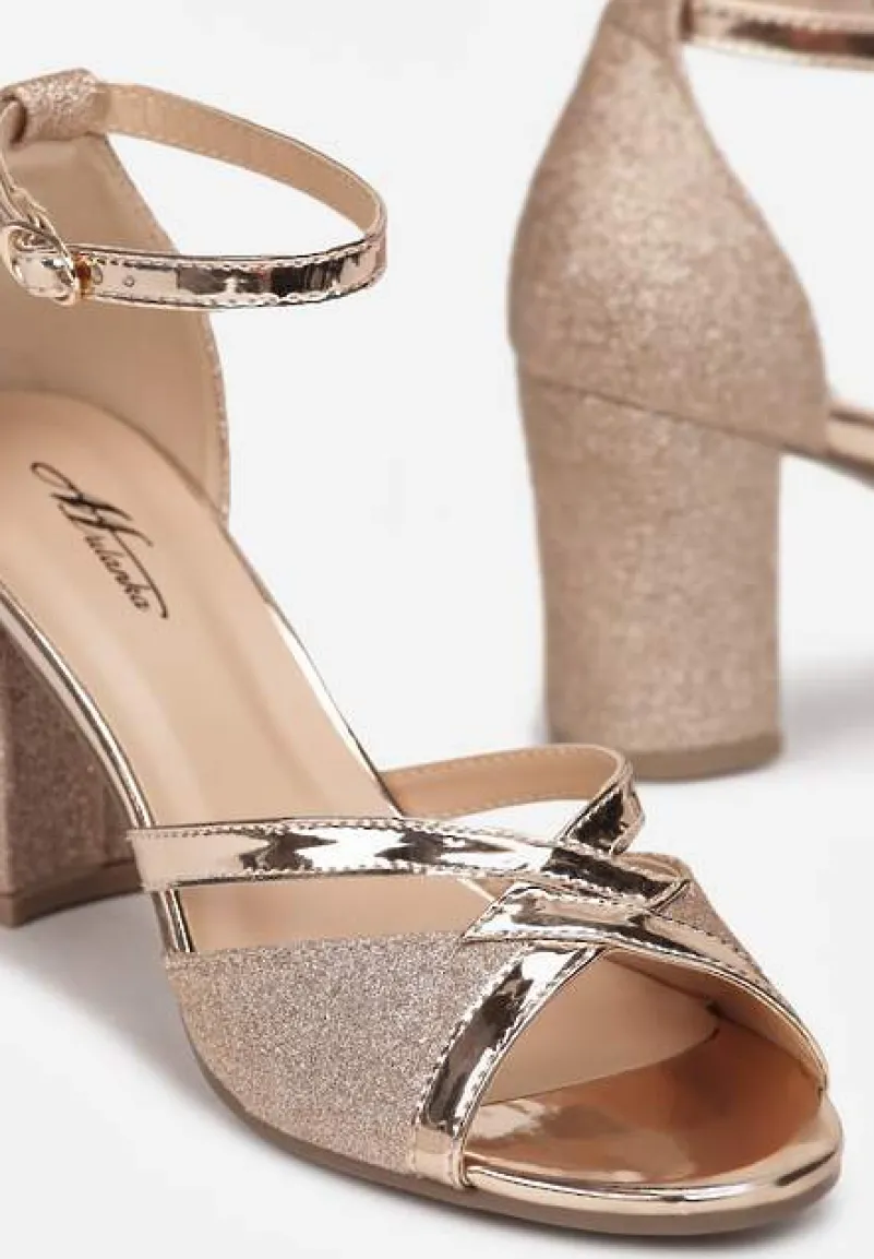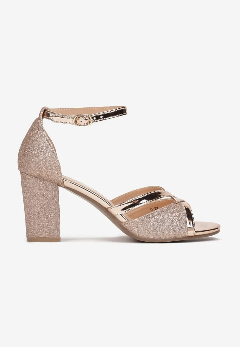 Szampańskie Sandały Brokatowe na Słupku Layo