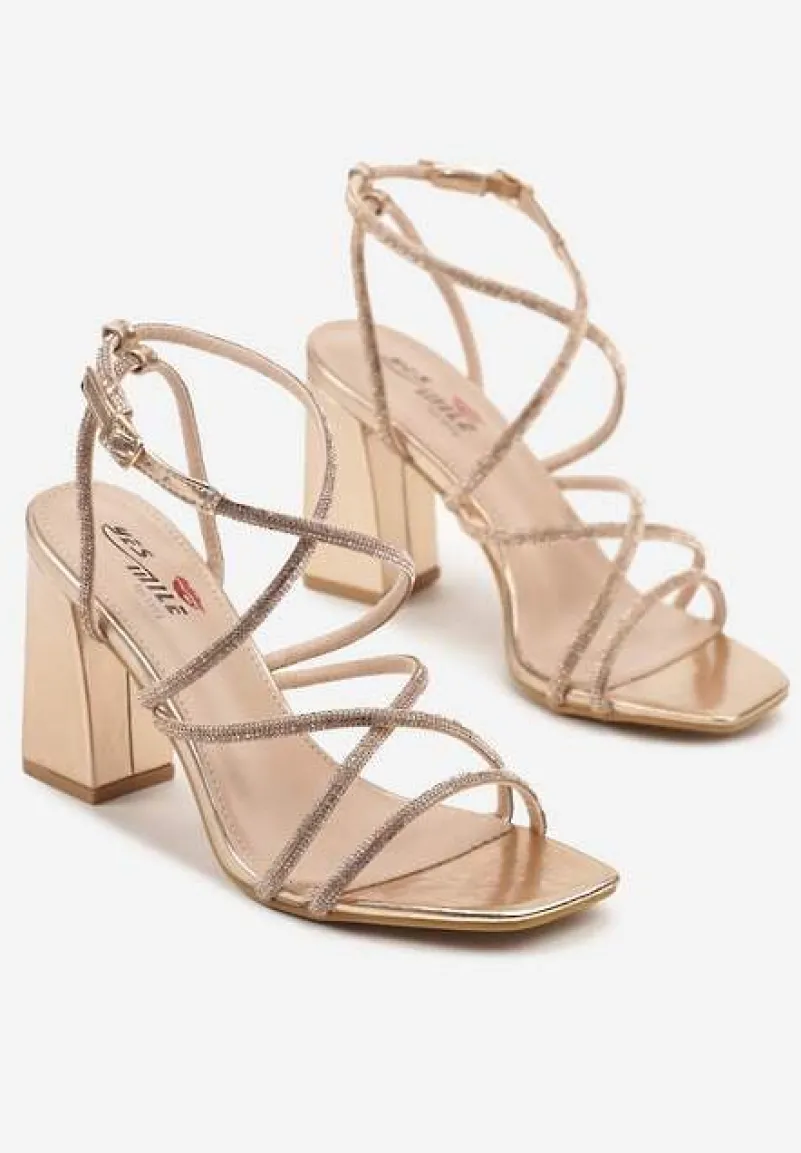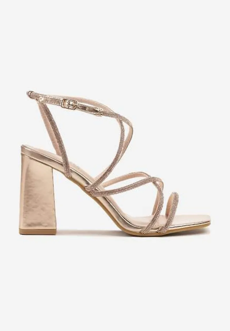 Szampańskie Sandały na Obcasie z Biżuteryjnymi Paseczkami Arriennea