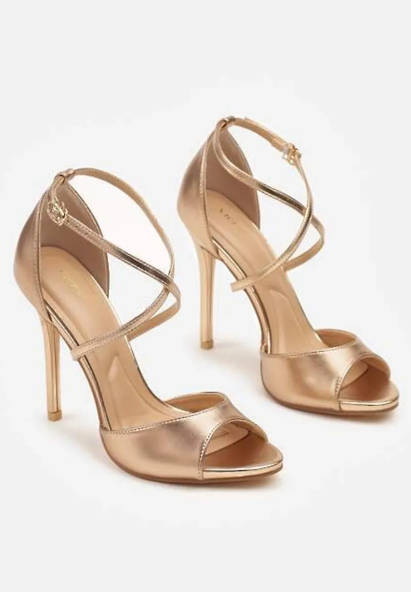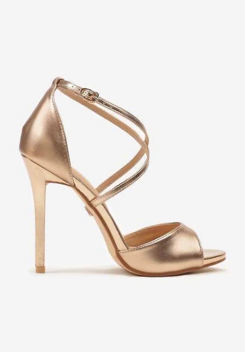 Szampańskie Sandały na Szpilce Vices Ozdobione Paskami Dorotina