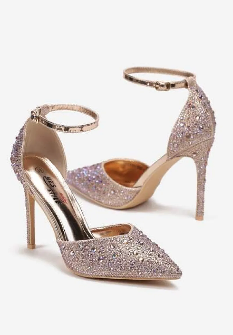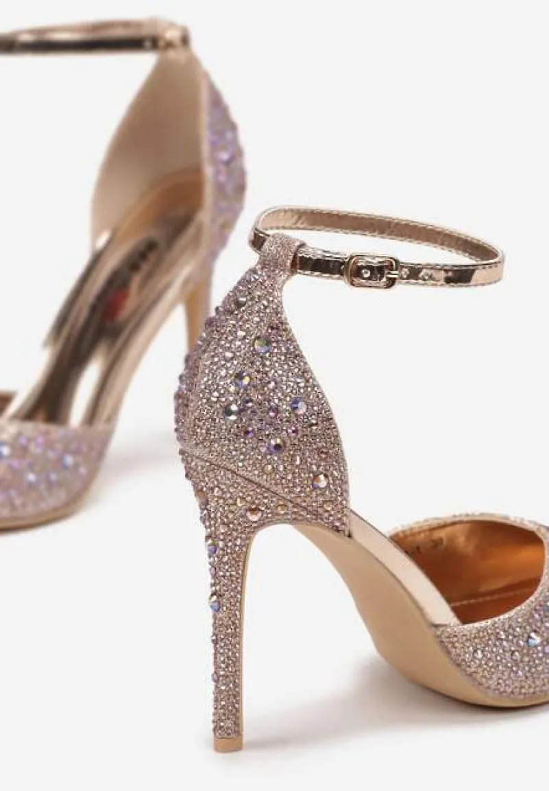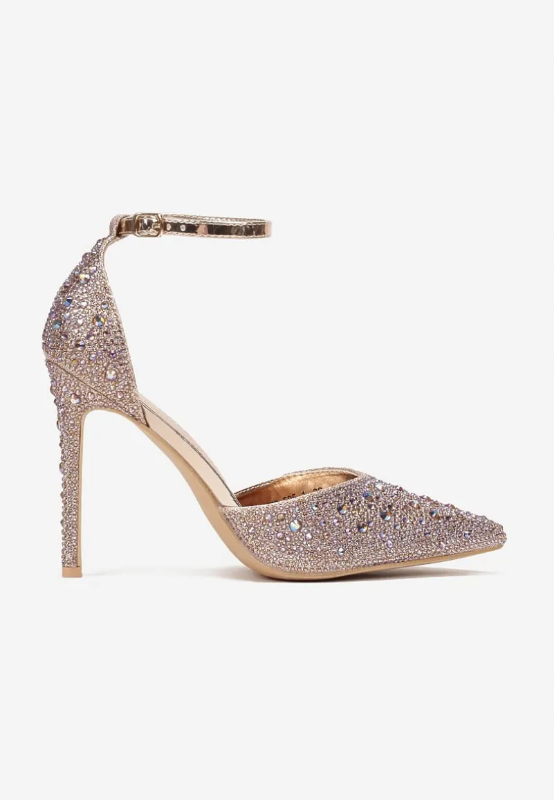 Szampańskie Sandały na Szpilce ze Sprzączką Ozdobione Cyrkoniami Alstresa