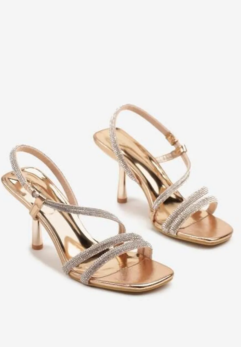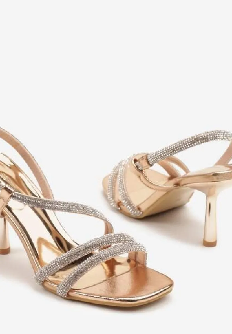 Szampańskie Sandały Vices na Szpilce z Cyrkoniowymi Paskami Niladriella