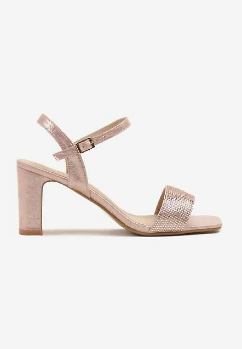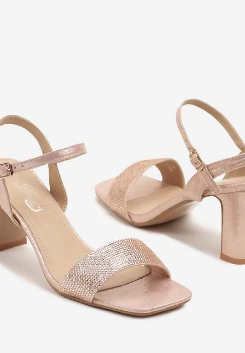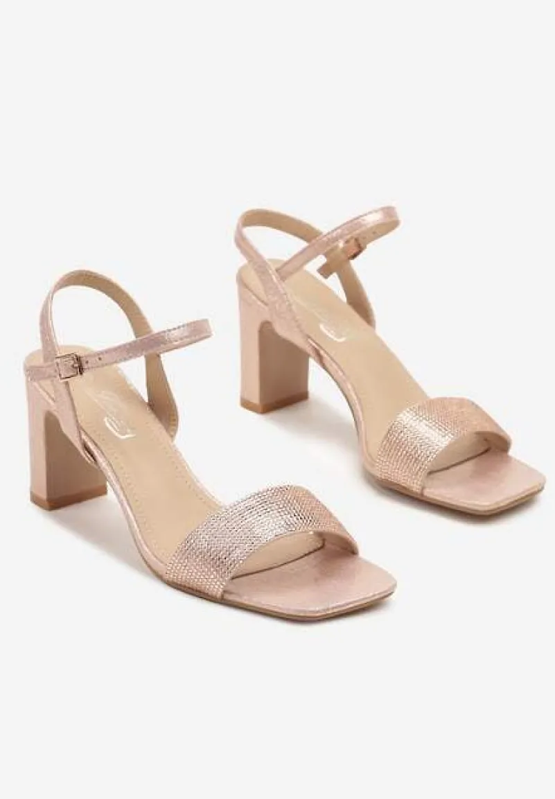 Szampańskie Sandały z Cyrkoniami na Słupkowym Obcasie Hirtewi