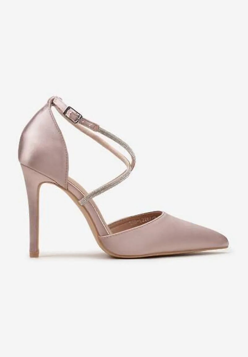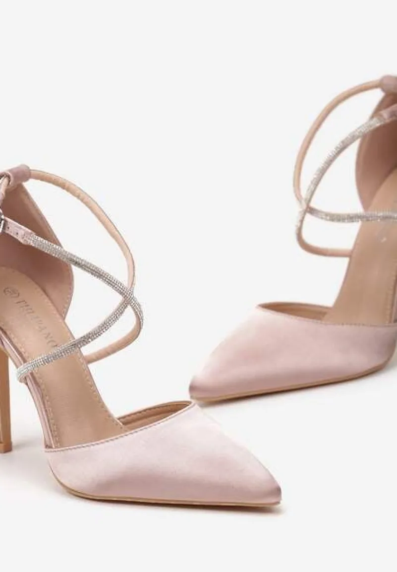 Szampańskie Satynowe Szpilki Ozdobione Cyrkoniami na Cienkich Paskach Wynstelle