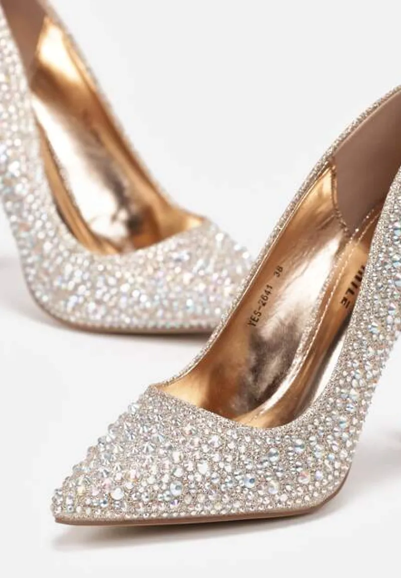 Szampańskie Szpilki w Cyrkonie ze Szpiczastym Noskiem Lysane