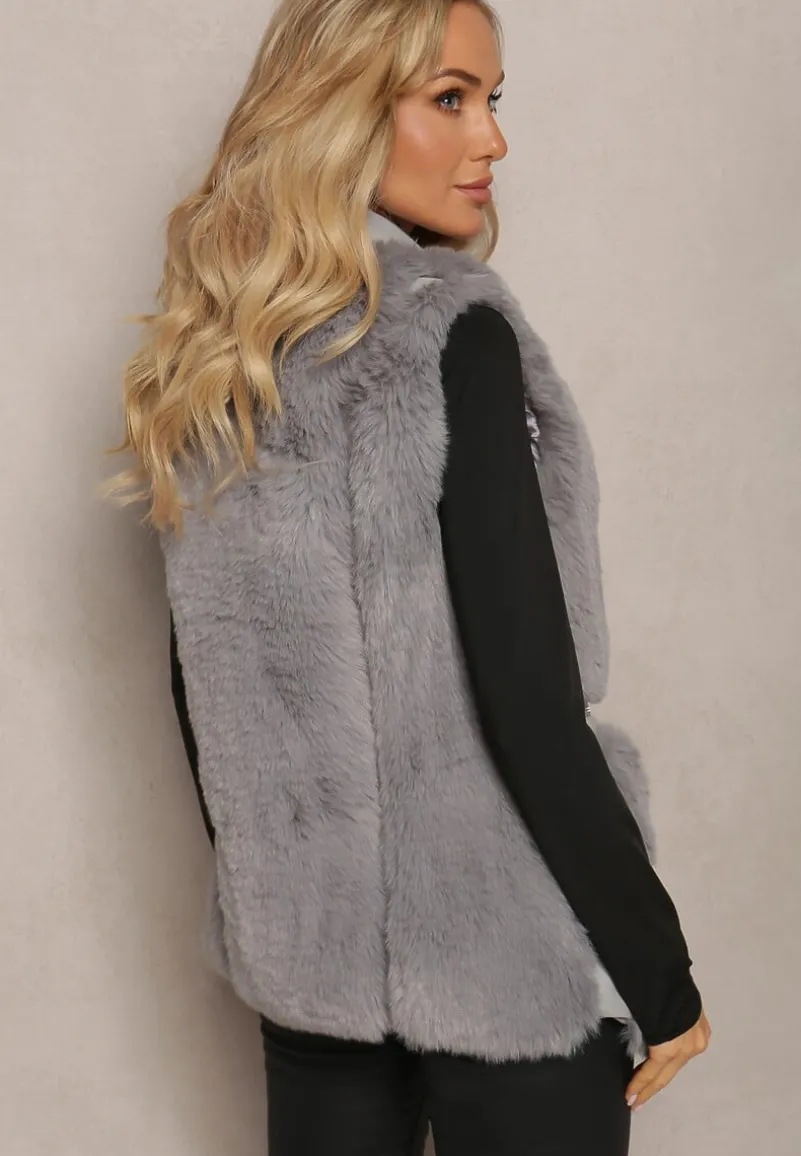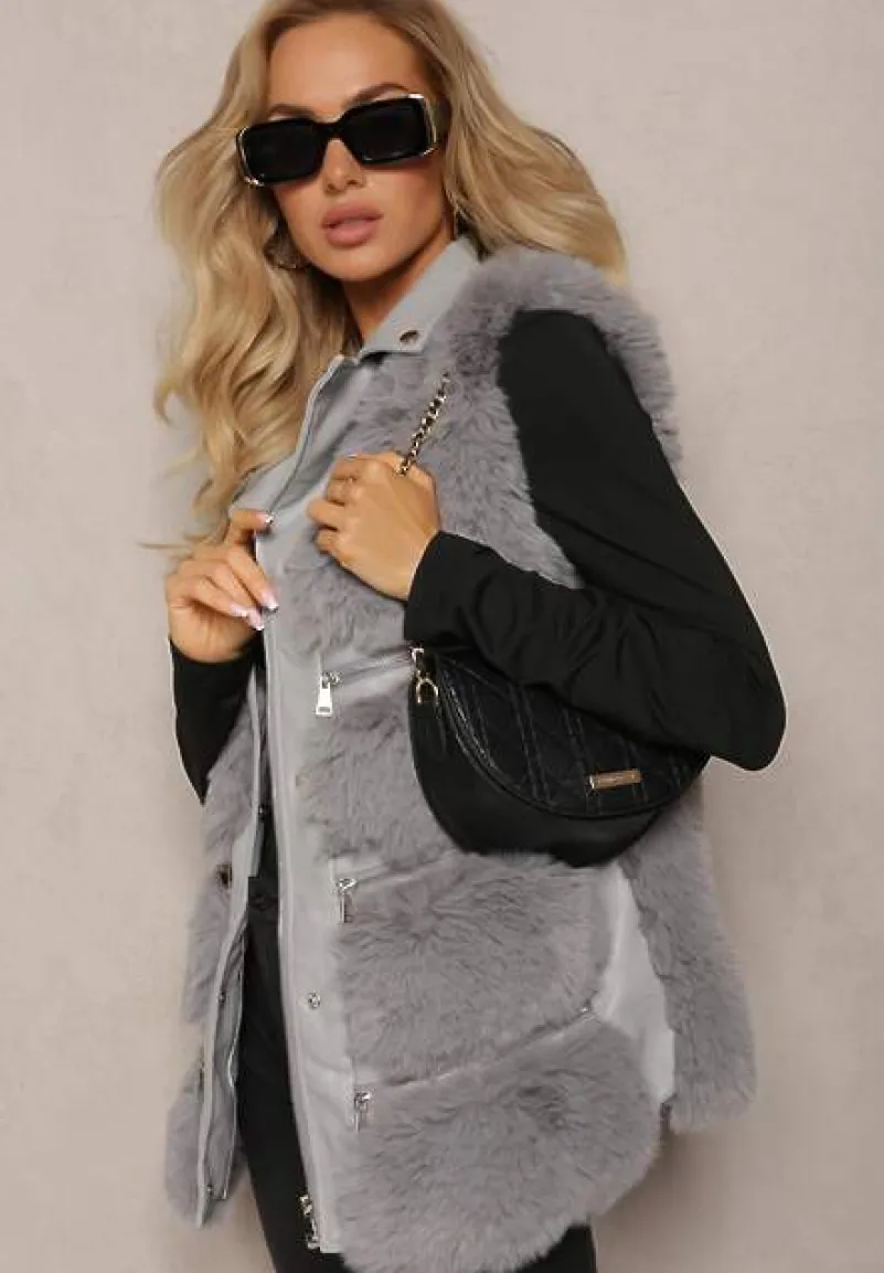 Bezrękawnik Sittame wykonany z połączenia sztucznego futerka i ekoskóry, ozdobiony suwakami. Kamizelka posiada podszewkę i zasuwane kieszonki.