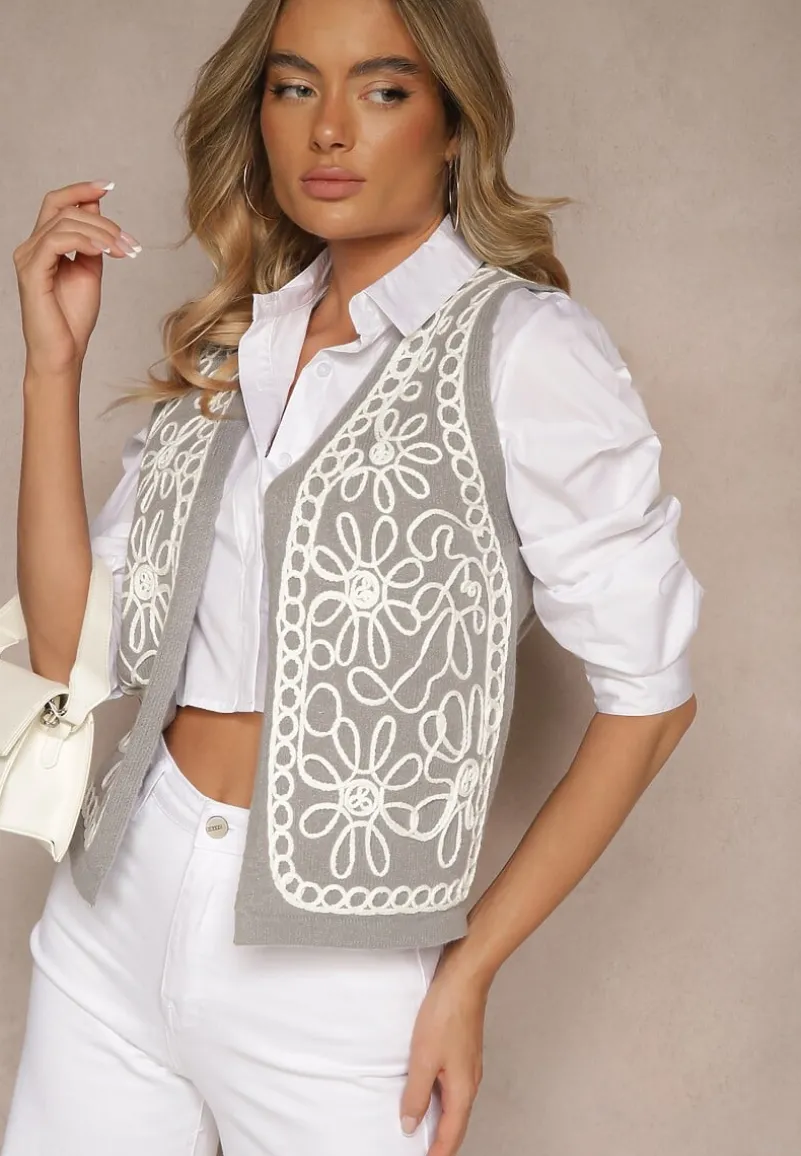 Kamizelka Sanorina to wyjątkowe połączenie elegancji i swobody, idealne dla kobiet pragnących podkreślić swój stylowy charakter. Efektowny kwiatowy wzór oraz subtelne zdobienia dodają jej wyrafinowanego uroku. Materiał z domieszką wiskozy sprawia, że jest to idealny wybór na przejściowe sezony. Na co dzień zestaw ją z ulubionymi jeansami i koszulką, a na wieczorne wyjście dodaj elegancką bluzkę i szpilki – zawsze wyglądaj zjawiskowo!