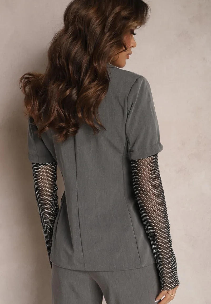 Wieczorowa marynarka o jednorzędowym fasonie udekorowana siateczką z błyszczącymi cyrkoniami.
