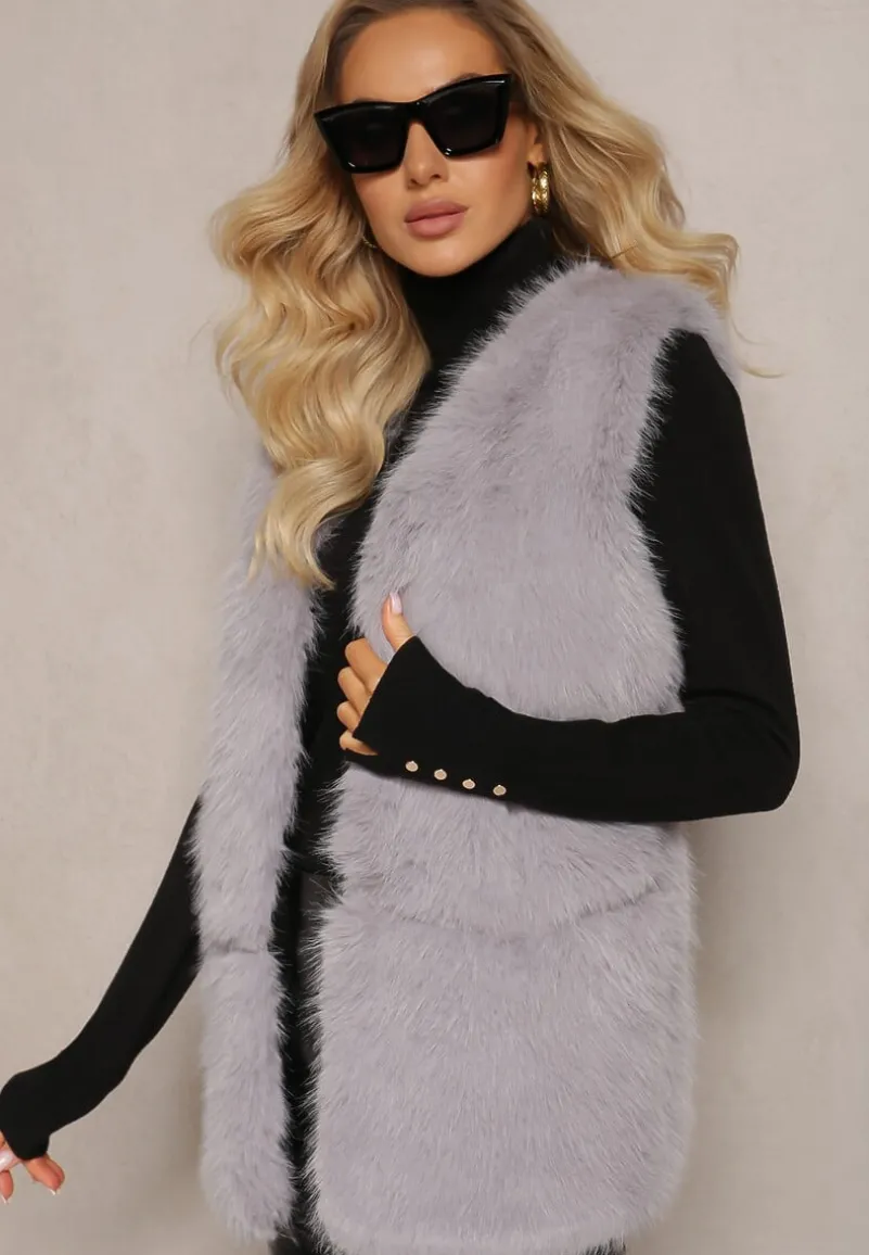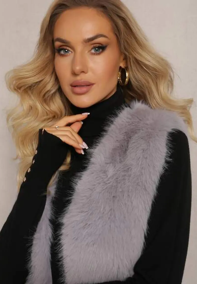 Kamizelka Tekllesa zapinana z przodu na haftki. Wykonana z miłego w dotyku, ozdobnego futerka. Zdobiona wstawkami z ekoskóry.