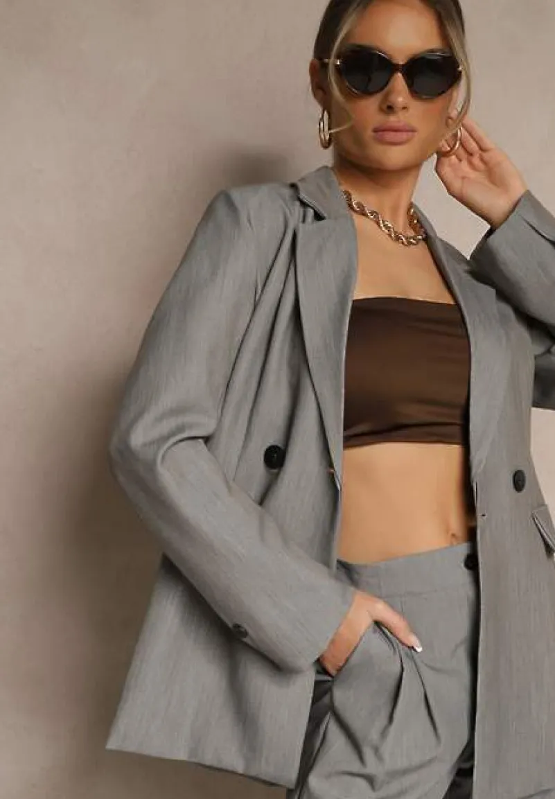 Twórz miejski szyk z pudełkową marynarką dwurzędową Salobine na guzik o wyrazistej linii i przemyślanym fasonie, która dodaje postawie pewności i klasy. Doskonała na każdą okazję – zarówno do pracy, jak i na wieczorne wyjścia. Z ozdobnymi imitacjami kieszeni. Idealnie skomponuje się z eleganckimi spodniami i szpilkami na spotkanie biznesowe, lub z modnymi trampkami i t-shirtem, tworząc casualową, ale wyrafinowaną stylizację na co dzień.