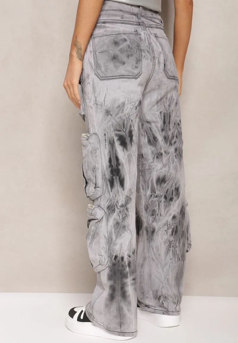 Jeansy Deriada o modnym fasonie cargo z naszytymi kieszeniami zapinanymi na zamki błyskawiczne. Świetne do sportowych sneakersów.