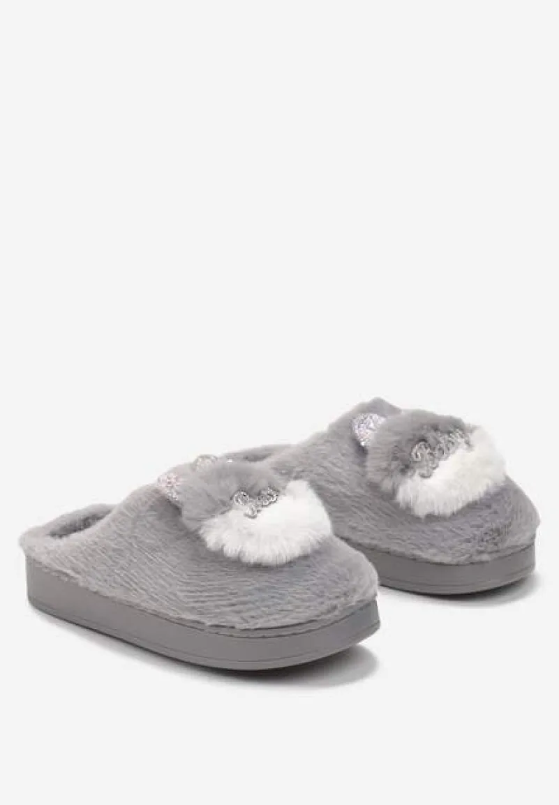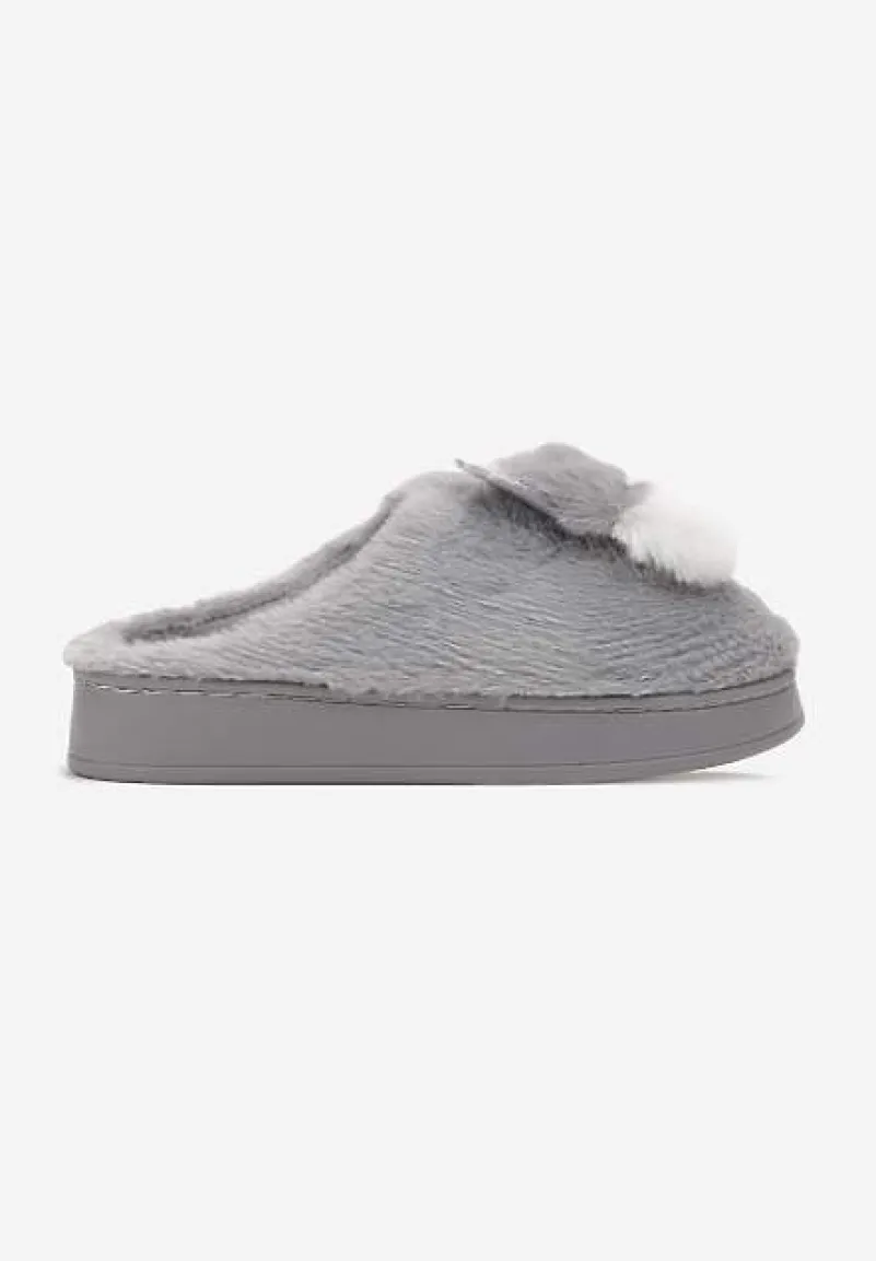 Kapcie Munere — na płaskiej podeszwie, wykonane ze sztucznego futra.