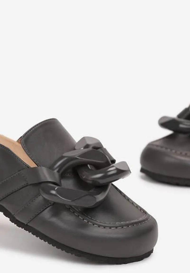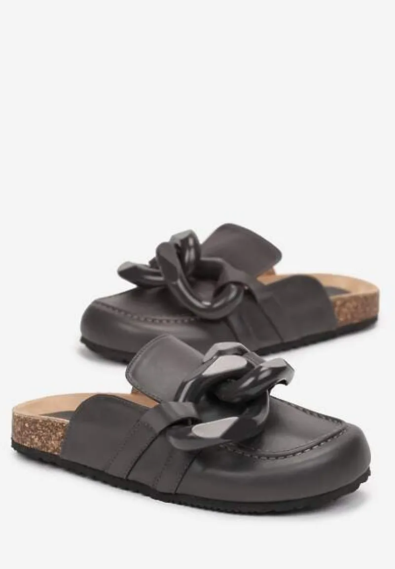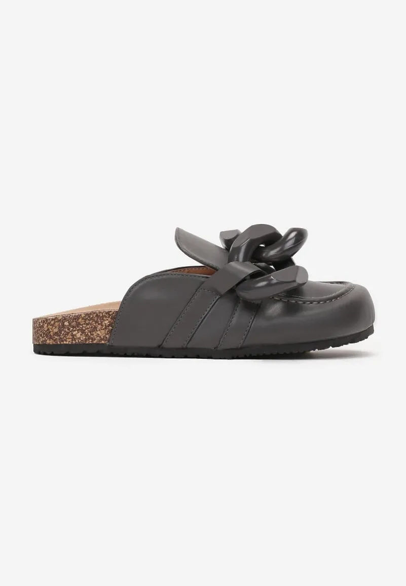 Klapki Farya na płaskiej, grubszej podeszwie z imitacji korka. Wykonane z ekoskóry.