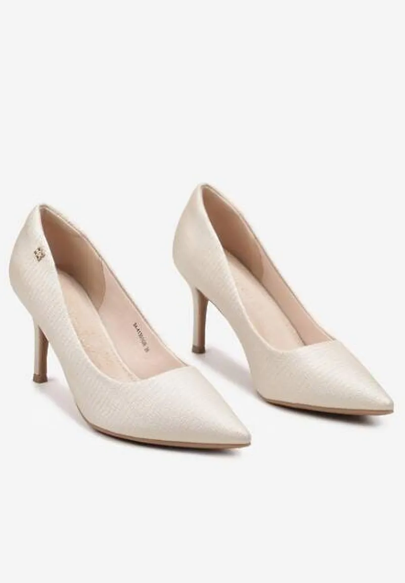 Szare Szpilki z Wkładką ze Skóry Naturalnej i Aplikacją o Metalowym Wykończeniu Krissan
