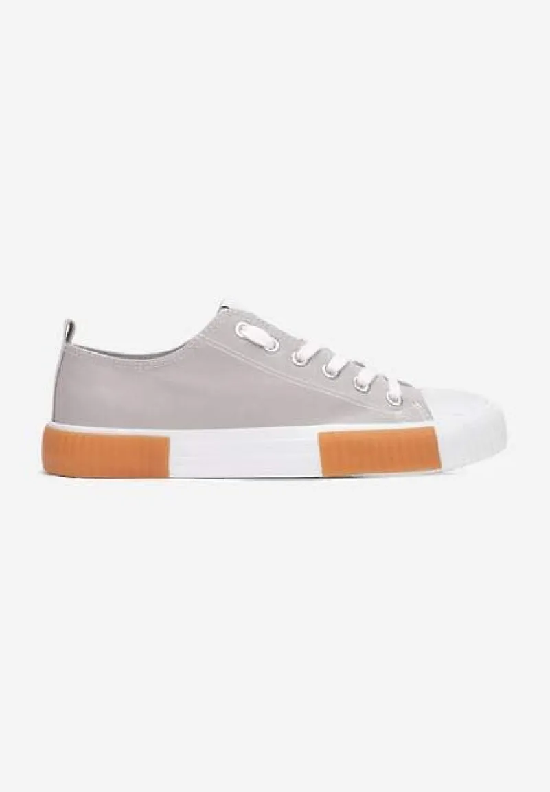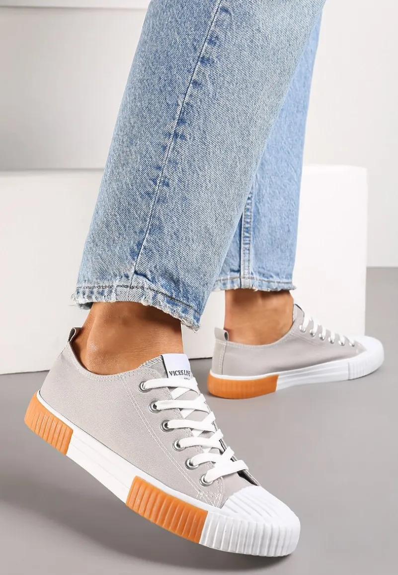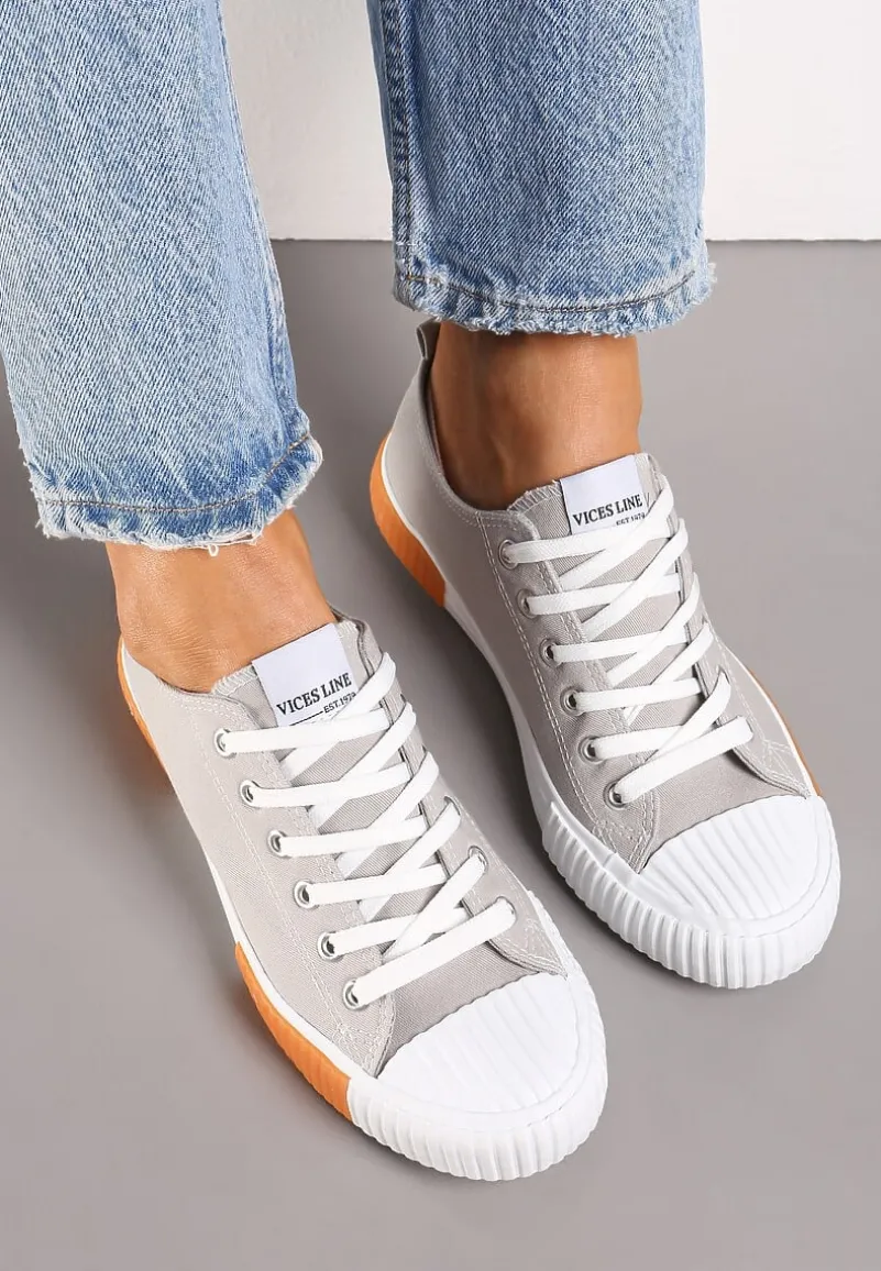 Trampki Athizephila niskie, sięgające przed kostkę. Osadzone na gumowej, białej podeszwie z pomarańczowymi wstawkami. Okrągły, gumowy nosek pokryty perforacją. Wiązane na górze na płaskie sznurowadła. Wykonane z materiału tekstylnego. Założysz je i do dzianinowego kompletu, i do casualowej sukienki albo szerokich spodni. Wybierz większy rozmiar.