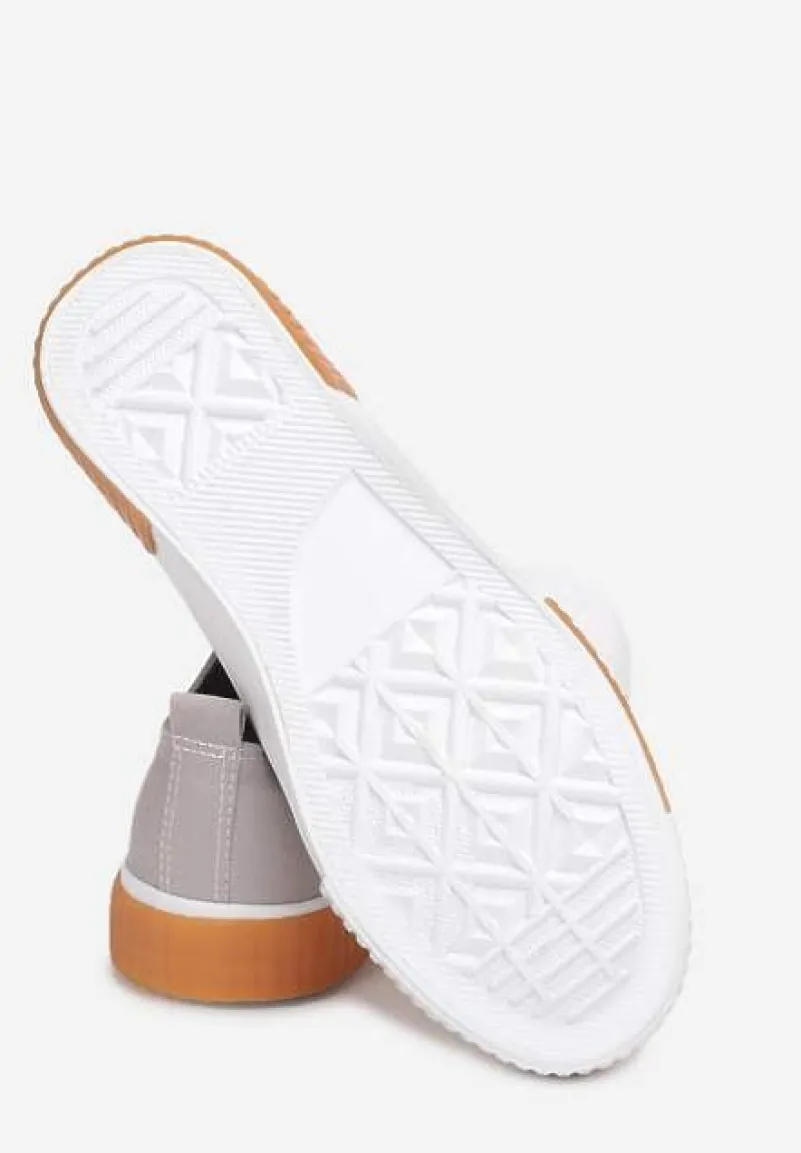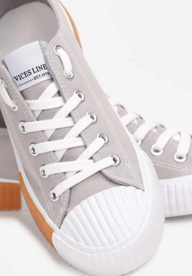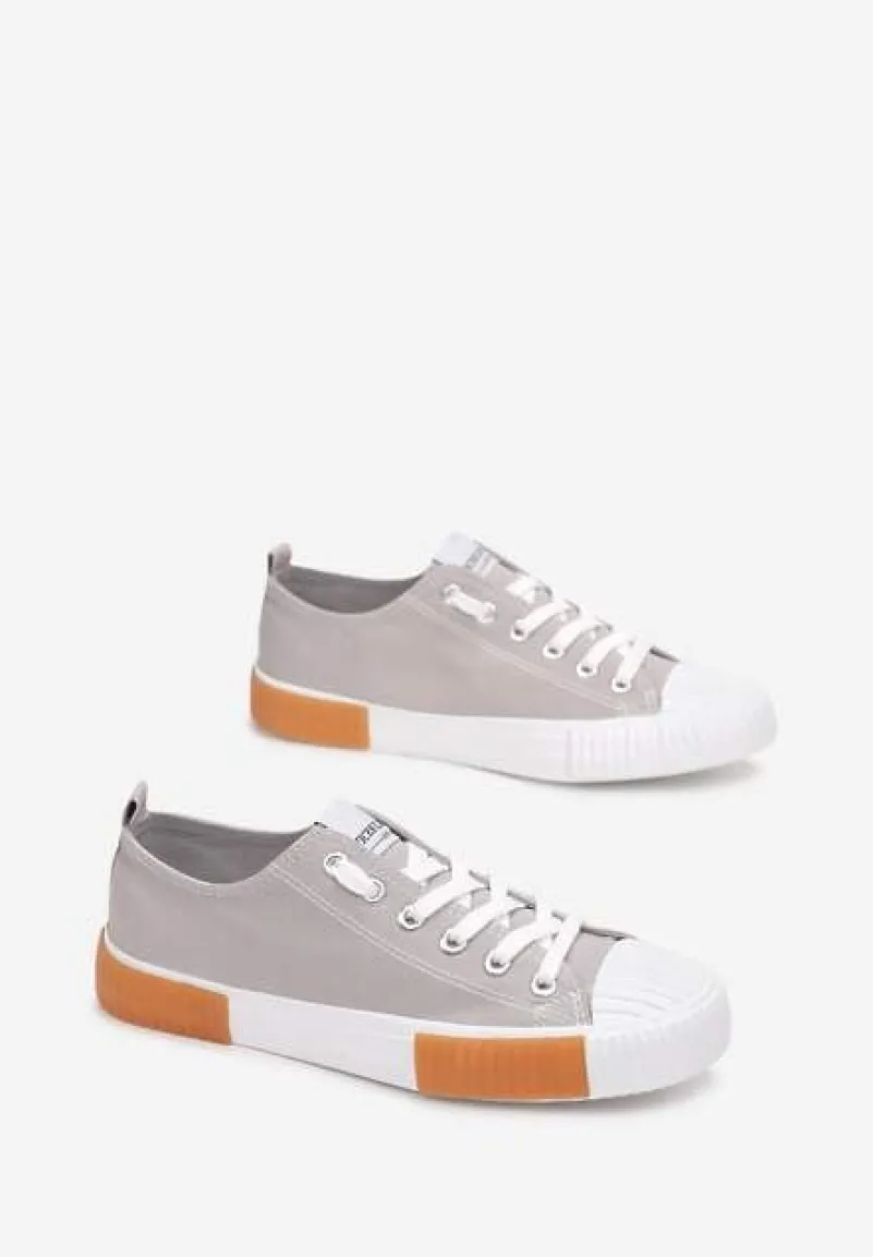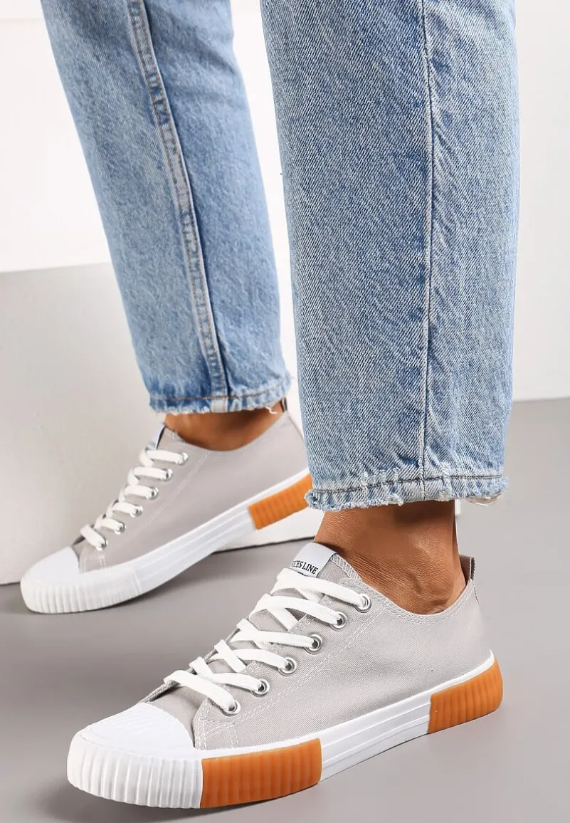 Trampki Athizephila niskie, sięgające przed kostkę. Osadzone na gumowej, białej podeszwie z pomarańczowymi wstawkami. Okrągły, gumowy nosek pokryty perforacją. Wiązane na górze na płaskie sznurowadła. Wykonane z materiału tekstylnego. Założysz je i do dzianinowego kompletu, i do casualowej sukienki albo szerokich spodni. Wybierz większy rozmiar.