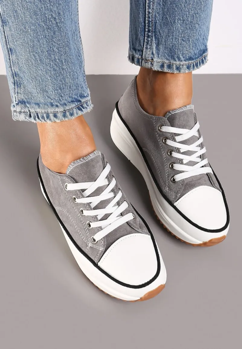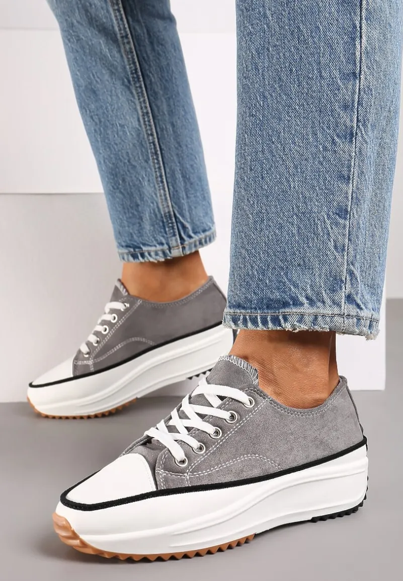 Trampki Nevelisse to must-have dla każdej kobiety, która ceni sobie połączenie wygody i najnowszych trendów. Na wysokiej platformie, gwarantują stabilność dzięki ozdobnemu bieżnikowi, idealnym kompanem do eksplorowania miejskiej dżungli. Okrągły nosek i klasyczne sznurowanie to ponadczasowy wybór, który świetnie wpisze się w codzienny look z luźnymi jeansami i oversize’owym swetrem, a także doda nonszalancji eleganckiej sukience mini. Niezależnie od pory roku, te trampki dodadzą charakteru Twoim stylizacjom.