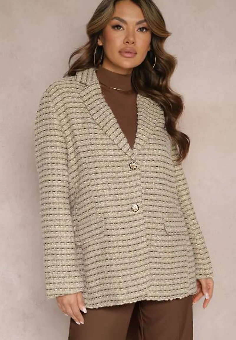 Tweedowa Marynarka Arielitta z ozdobnymi guzikami i klapami – idealna dla miłośniczek stylu retro!