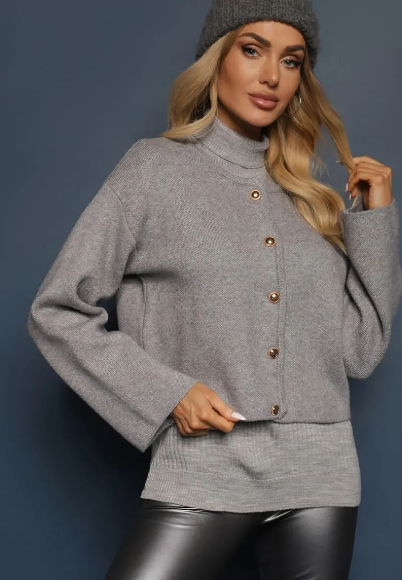 Kardigan Asilya to prawdziwy must-have w garderobie każdej miłośniczki mody. Metalowe guziki to nie tylko funkcjonalny element – stanowią również stylowy akcent, który przyciąga wzrok. Ten kardigan idealnym wyborem na chłodniejsze wieczory, niezależnie od sezonu. Doskonale komponuje się z prostymi topami i rozkloszowanymi spódnicami na co dzień, a w połączeniu z czarnymi spodniami z wysokim stanem i eleganckimi szpilkami tworzy zestaw, w którym będziesz gwiazdą każdego formalnego wydarzenia.