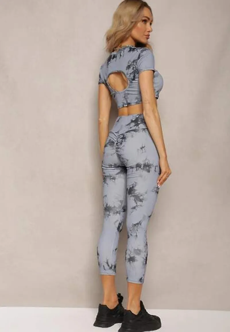 Komplet sportowy Davenia będzie Twoim atutem zarówno podczas jogi, jak i spotkań z przyjaciółkami. Cropped top z krótkimi rękawami podkreśla indywidualność oraz pozwala czuć się swobodnie i kobieco w każdej sytuacji. Legginsy idealnie dopasowują się do figury, a ich oryginalny wzór tie-dye przyciąga wzrok. Jest to strój, który można łączyć z ulubionymi sneakersami lub sportowymi klapkami.