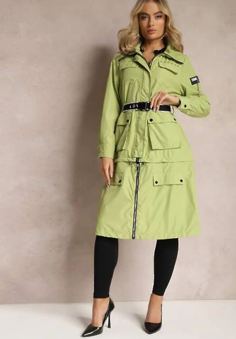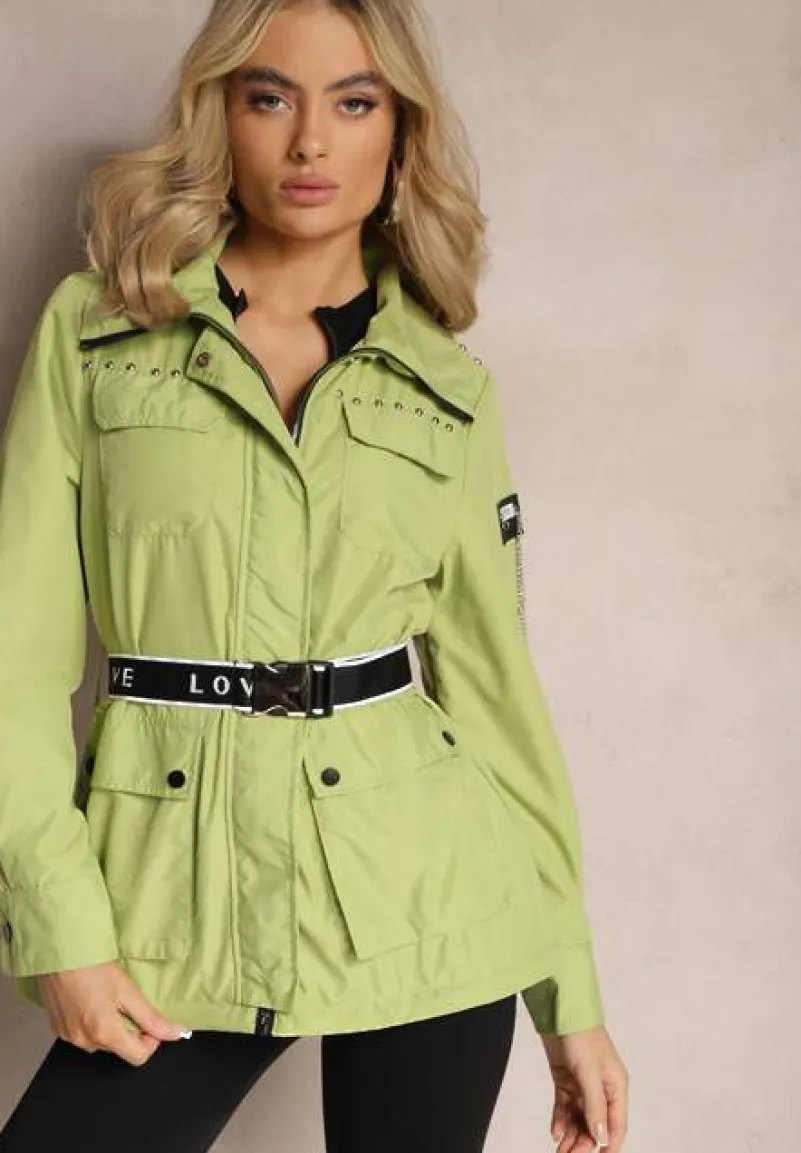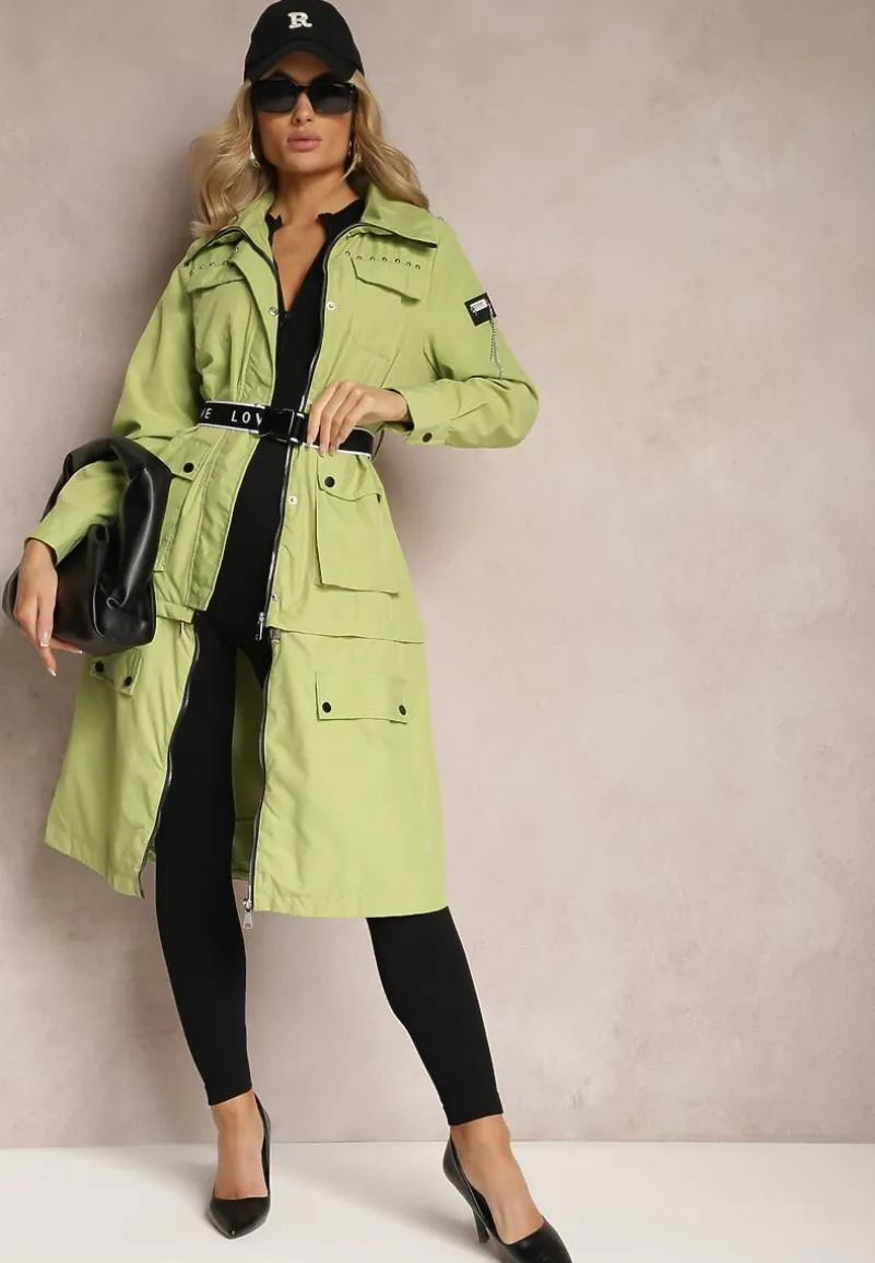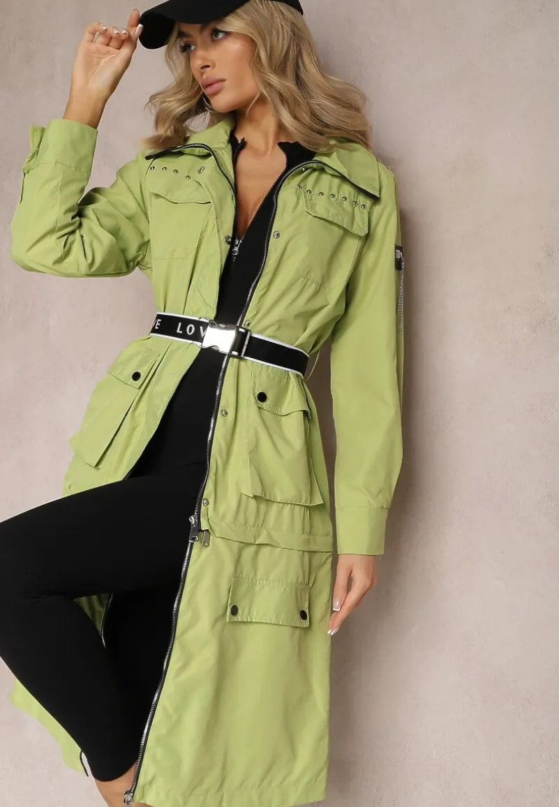 Kurtka Aavya której długość możesz swobodnie regulować zamkiem błyskawicznym. Zasuwana, z ozdobnym paskiem w talii. Na górze klasyczny kołnierzyk oraz stylowe nity. Wyposażona w liczne kieszenie z klapą, na wysokości pasa oraz klatki piersiowej. Na rękawie metalowa ozdoba.