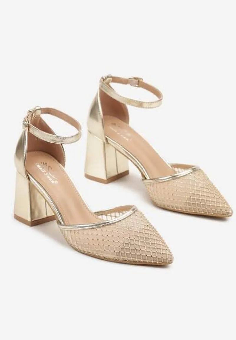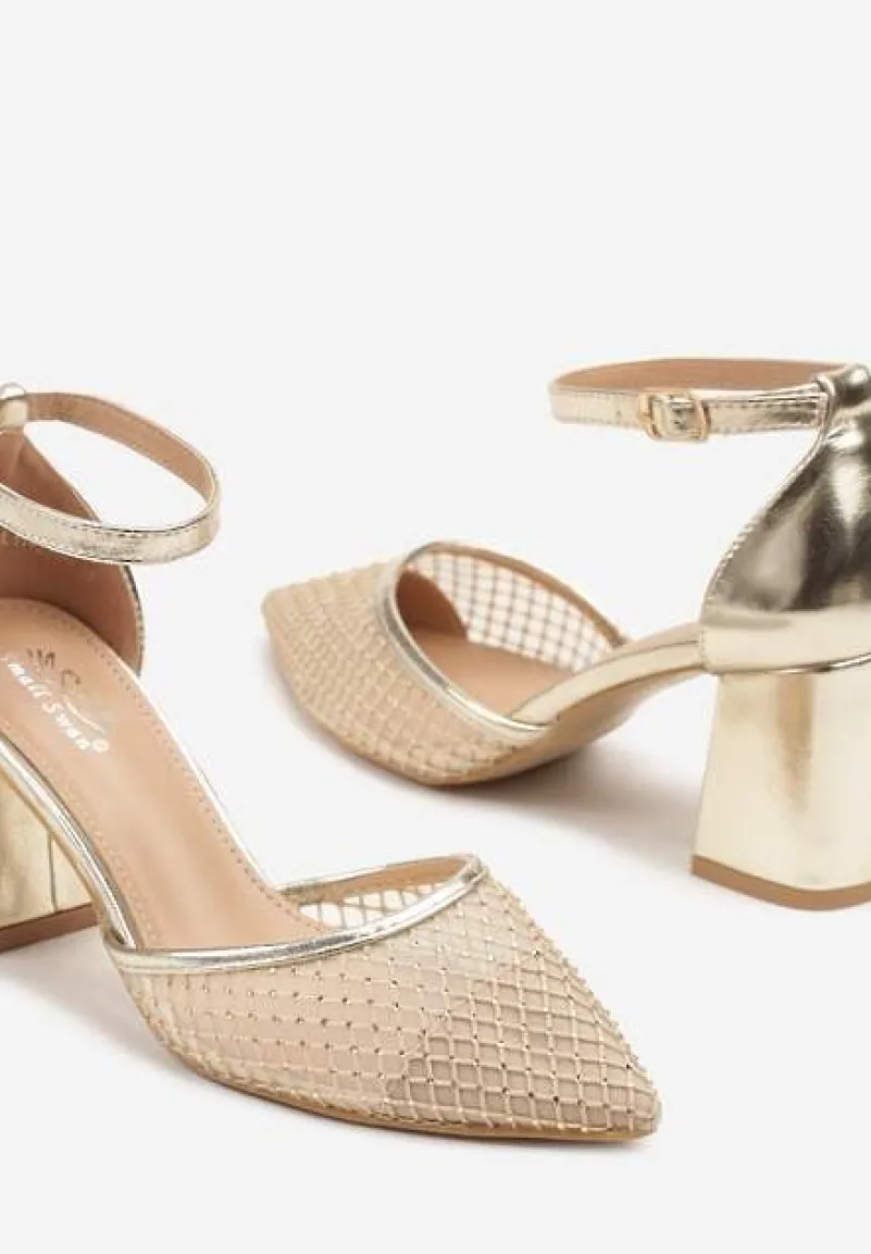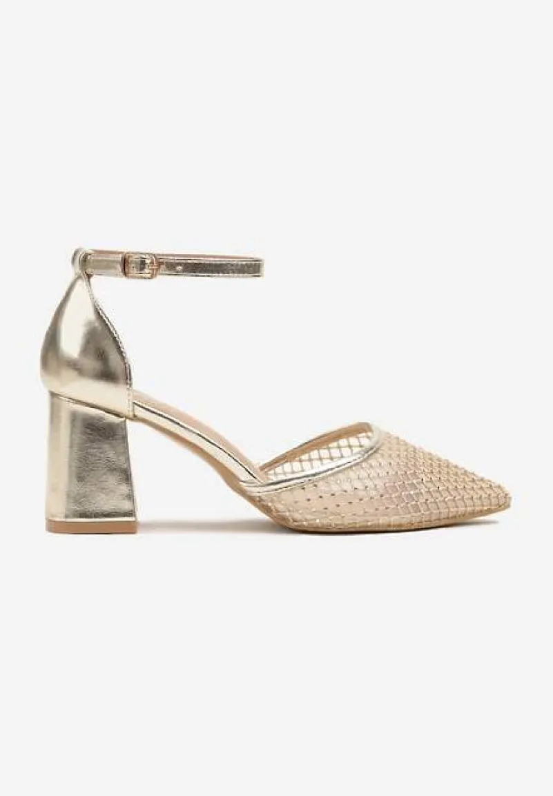 Złote Czółenka na Słupku z Siateczkową Cholewką i Cyrkoniami Ariveli