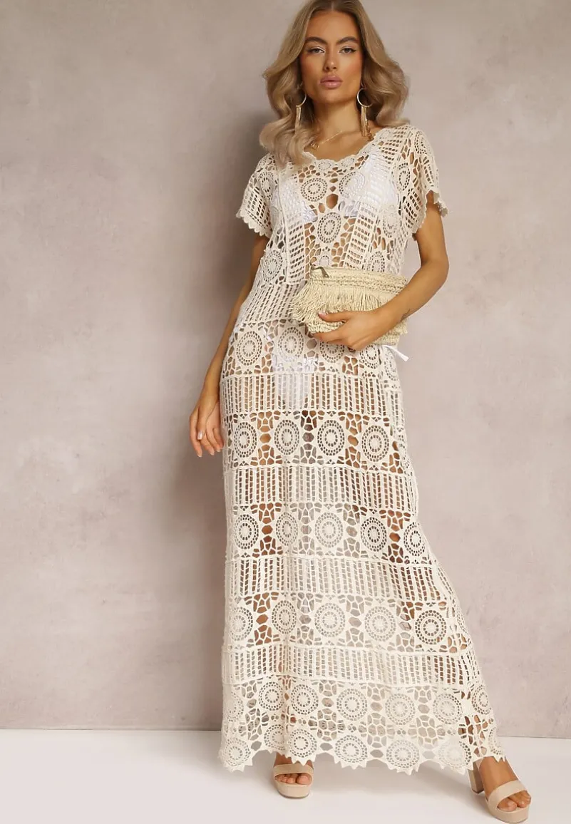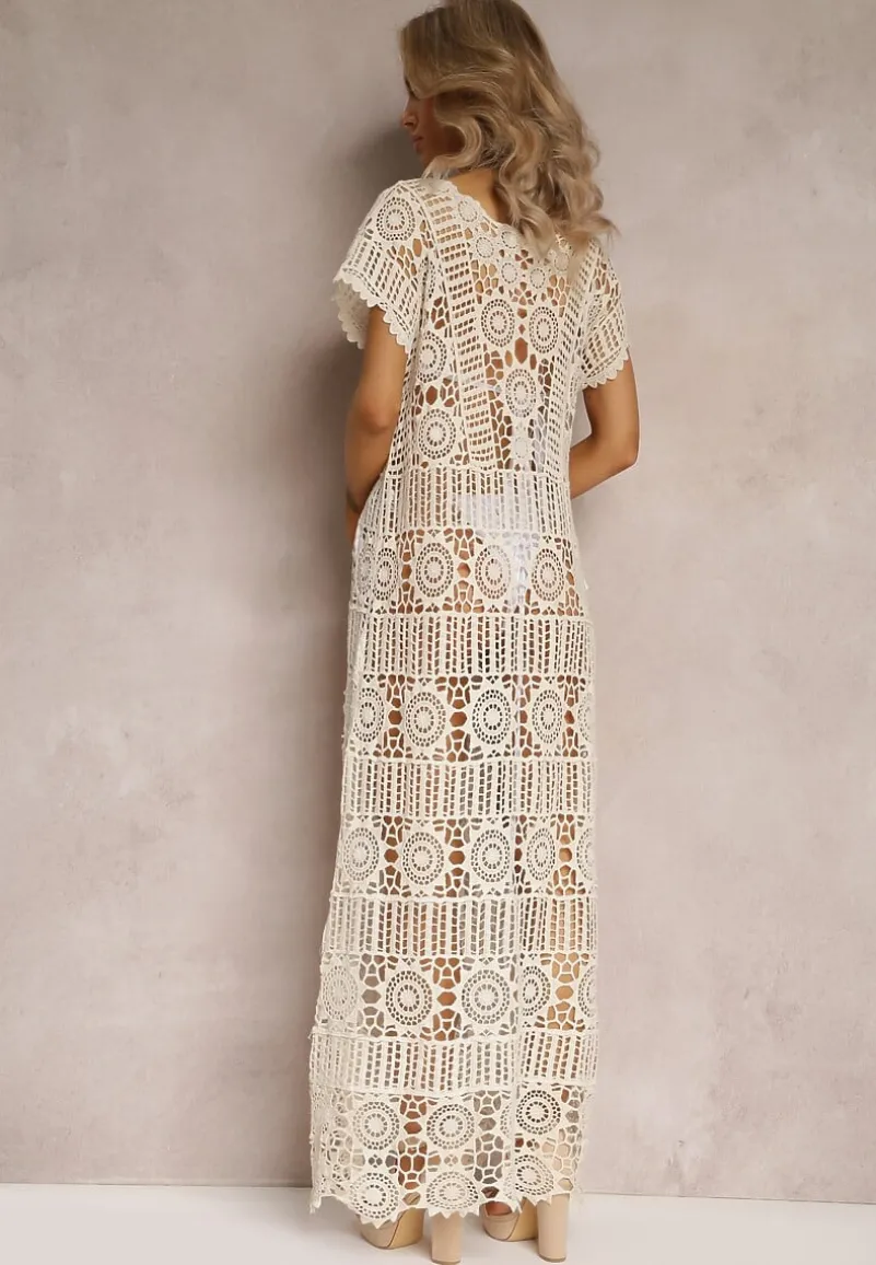 Ażurowa Sukienka Plażowa z Bawełny Taymbeth to must-have nadchodzącego sezonu! Elegancki fason z krótkim rękawem oraz dekoltem w serek gwarantuje nie tylko oryginalny wygląd, ale i komfort noszenia w upalne dni. Ażurowy wzór dodaje lekkości, a bawełniany materiał zapewnia przewiewność, dzięki czemu sukienka będzie doskonała na plażę lub letnie spacery. Stylizuj ją na co dzień z ulubionymi klapkami i słomkowym kapeluszem, lub postaw na wiązane sandałki i pareo, by stworzyć zwiewny, romantyczny look, który doskonale podkreśli Twoją pewność siebie! Sukienka nie posiada podszewki.