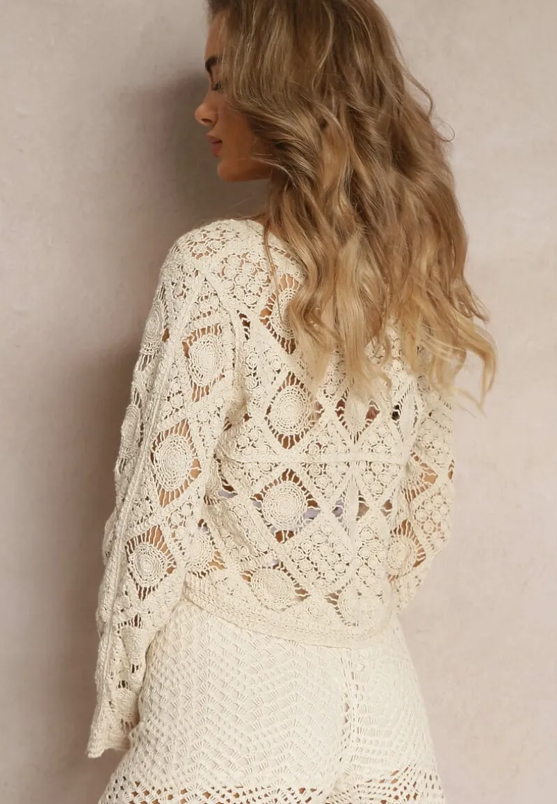 Ażurowa Bluzka Quartisa z długim rękawem, zapinana z przodu na guziki. Wykonana z bawełnianej tkaniny. Doskonale dopełni wiele stylizacji!