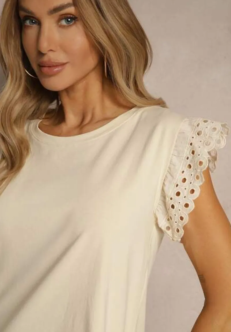 Oto bawełniana bluzka z krótkim rękawem Voanira, która doskonale wpisuje się w aktualne trendy mody. Z delikatnymi ażurowymi falbankami na rękawach, dodaje lekkości i romantyzmu każdej stylizacji. Jej prosty, ale efektowny krój sprawdzi się zarówno na co dzień, jak i podczas formalnych spotkań — wystarczy zestawić ją z eleganckimi spodniami i szpilkami, aby stworzyć idealny look na każdą okazję. Wykonana z bawełny.