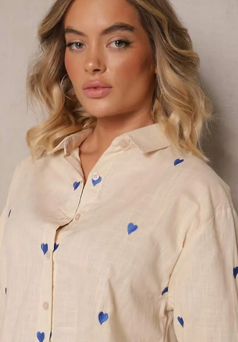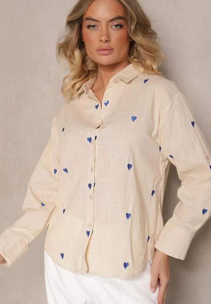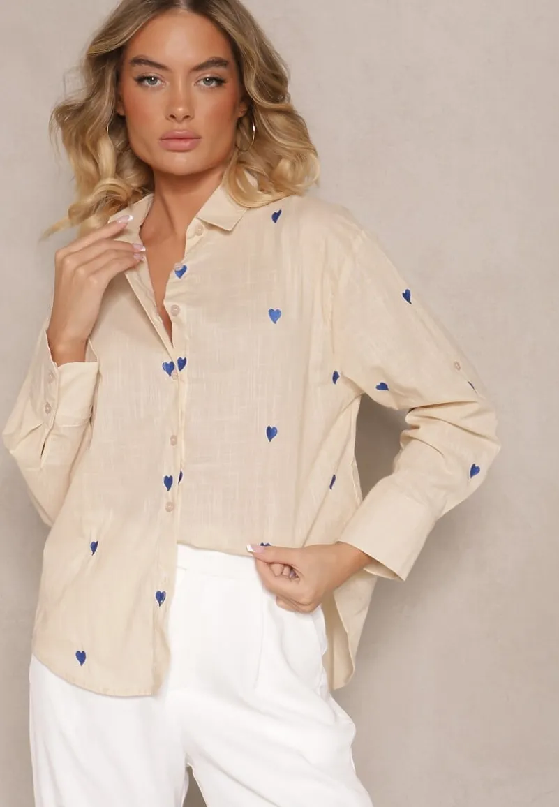 Bawełniana Koszula w Serca Elearose to świetny wybór dla kobiet, które lubią modowe nowinki i chcą poczuć się pewnie w każdej stylizacji. Ma klasyczny prosty krój z długimi, podwijanymi rękawami zakończonymi mankietami, co nadaje jej elegancji, a subtelny kołnierzyk i delikatny dekolt z guzikiem dodają lekkości. Uroczy wzór w serca sprawia, że koszula idealnie wpisuje się w swobodny, ale modny look. Stylizuj ją na co dzień z jeansami i sneakersami lub na formalne okazje z ołówkową spódnicą i szpilkami – zawsze będziesz wyglądać stylowo i z klasą.